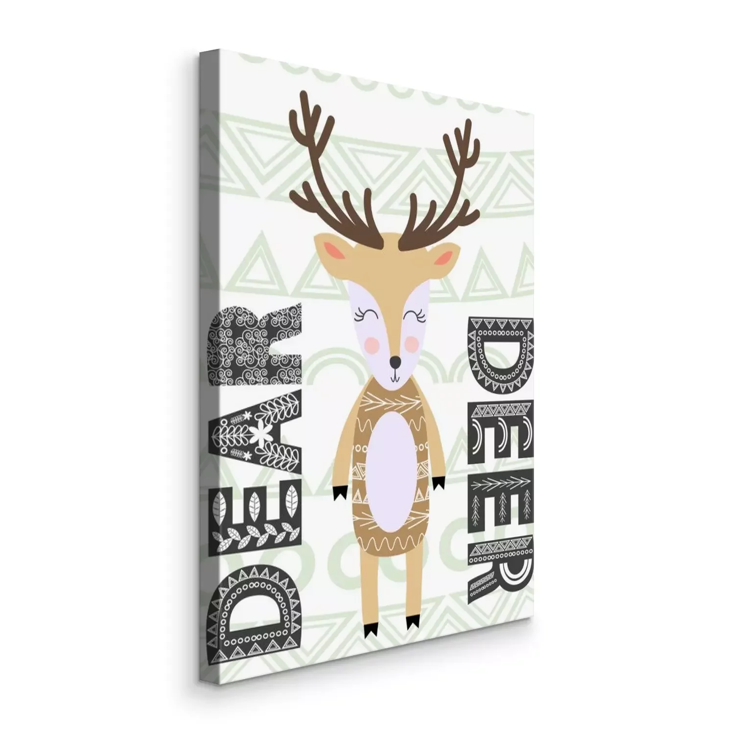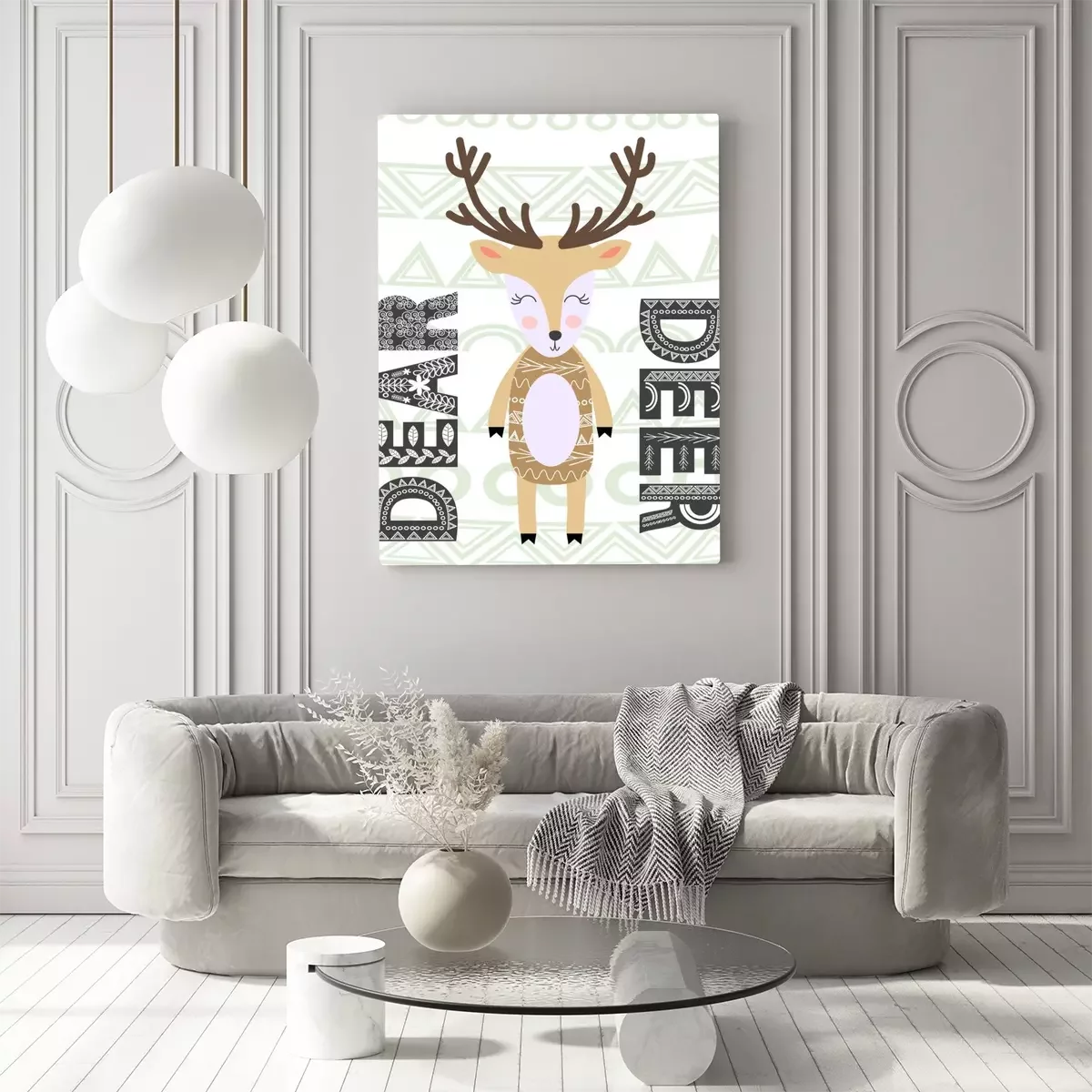 Tableau : Cute cartoon deer. Composition with folk art animals and floral decor elements. Scandinavian style