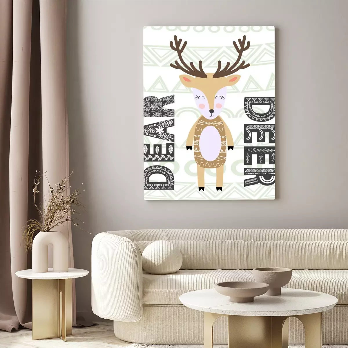 Tableau  Cute cartoon deer. Composition with folk art animals and floral decor elements. Scandinavian style