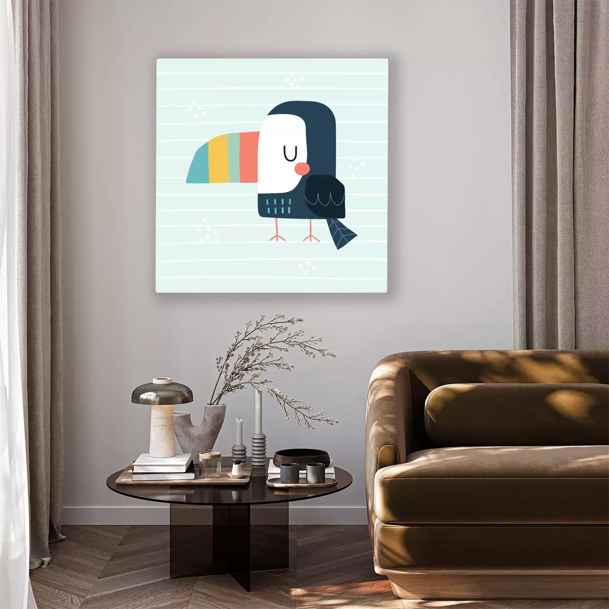 Tableau  Cute cartoon toucan. Vector colorful illustration in a scandinavian style with simple background. Funny hand drawn poster.