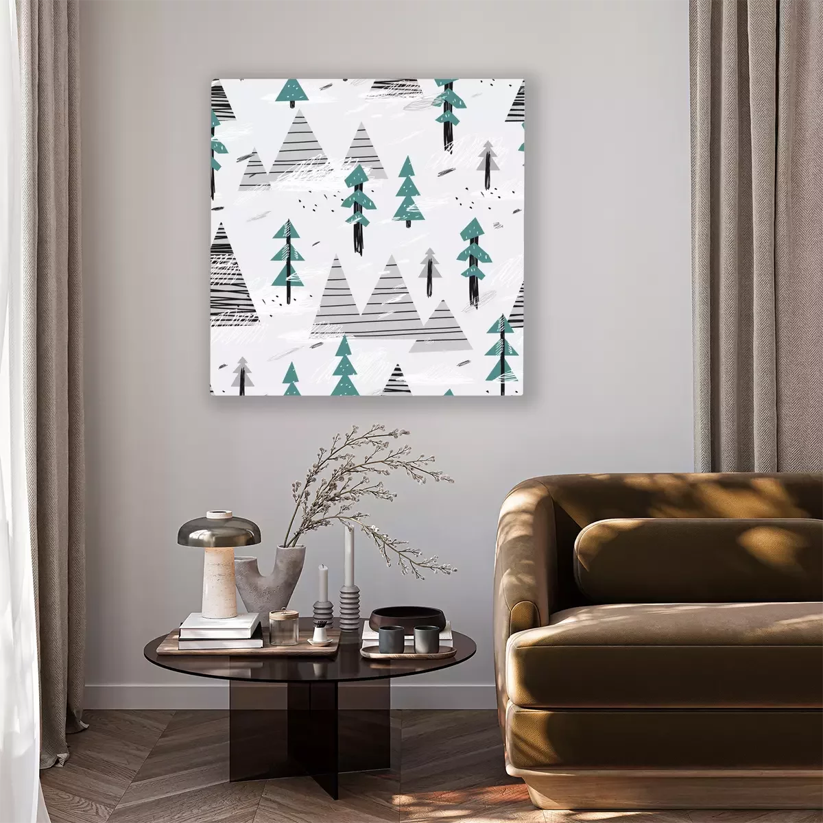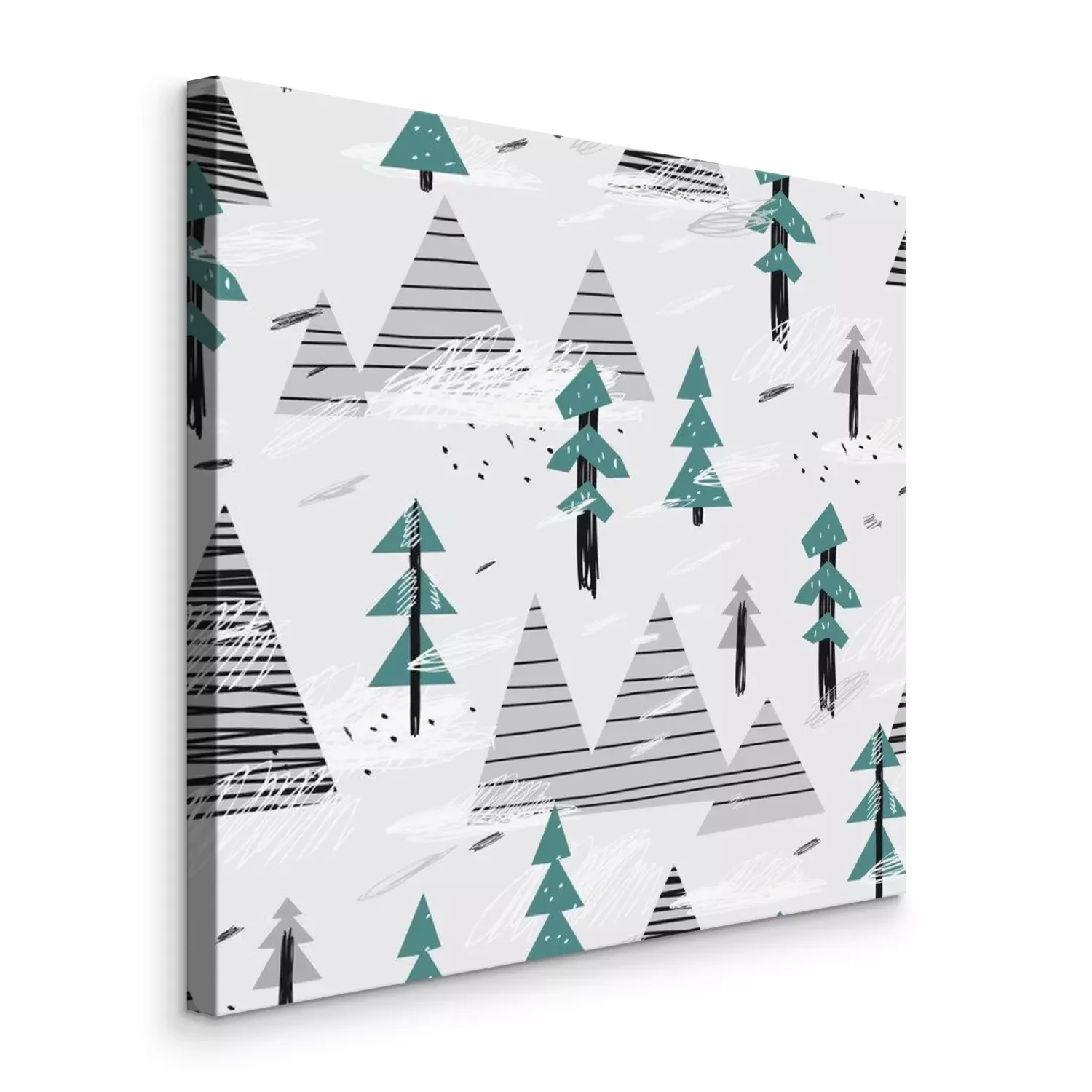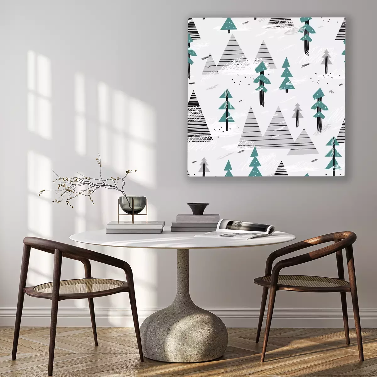 Tableau  Cute seamless pattern with mountains and trees. Creative scandinavian woodland background. Vector illustration. Childish illustration.