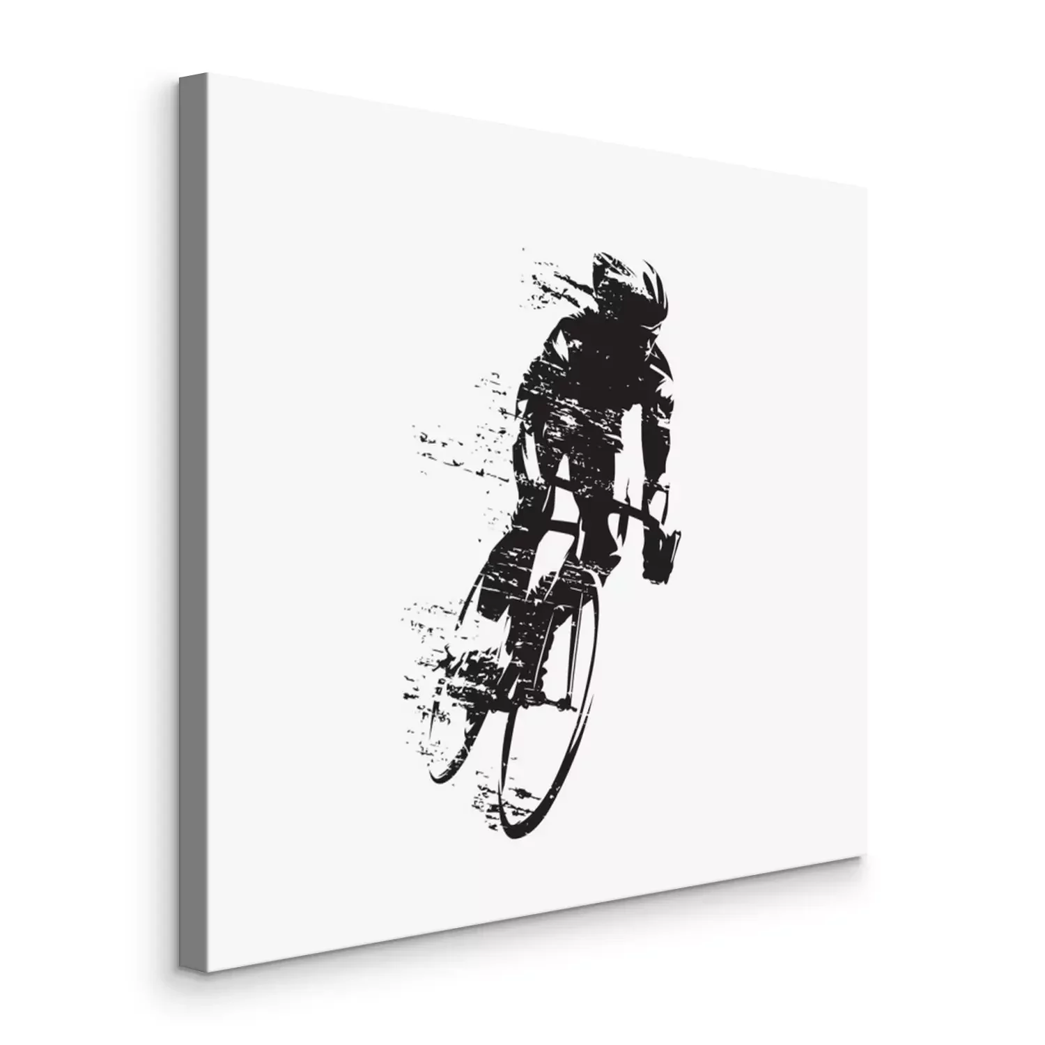 Tableau : Cycling, road cyclist rides bike, front view isolated vector silhouette
