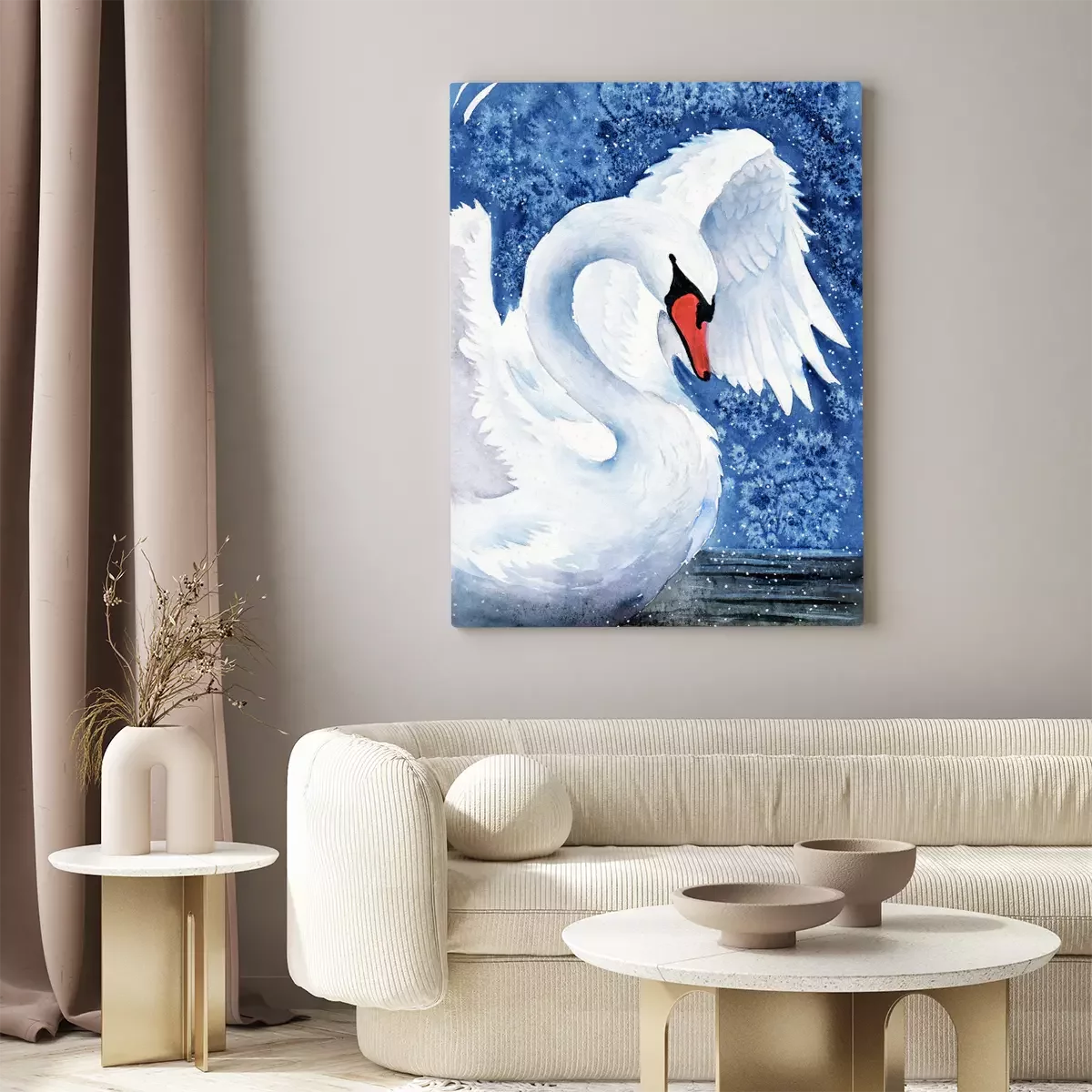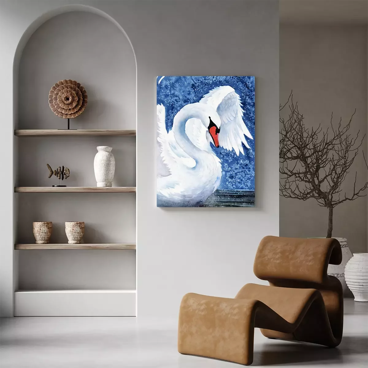 Tableau : Cygne blanc et eau bleue