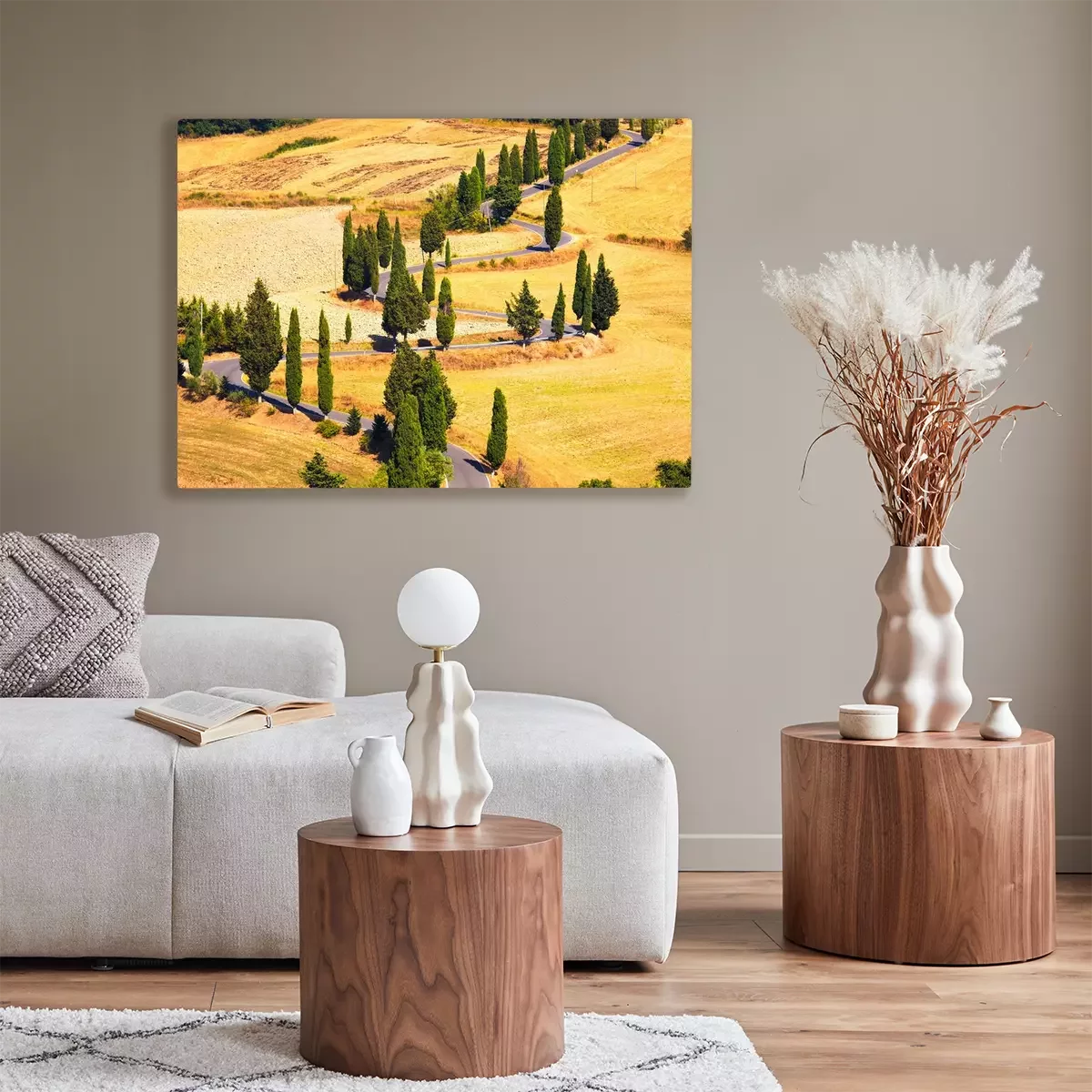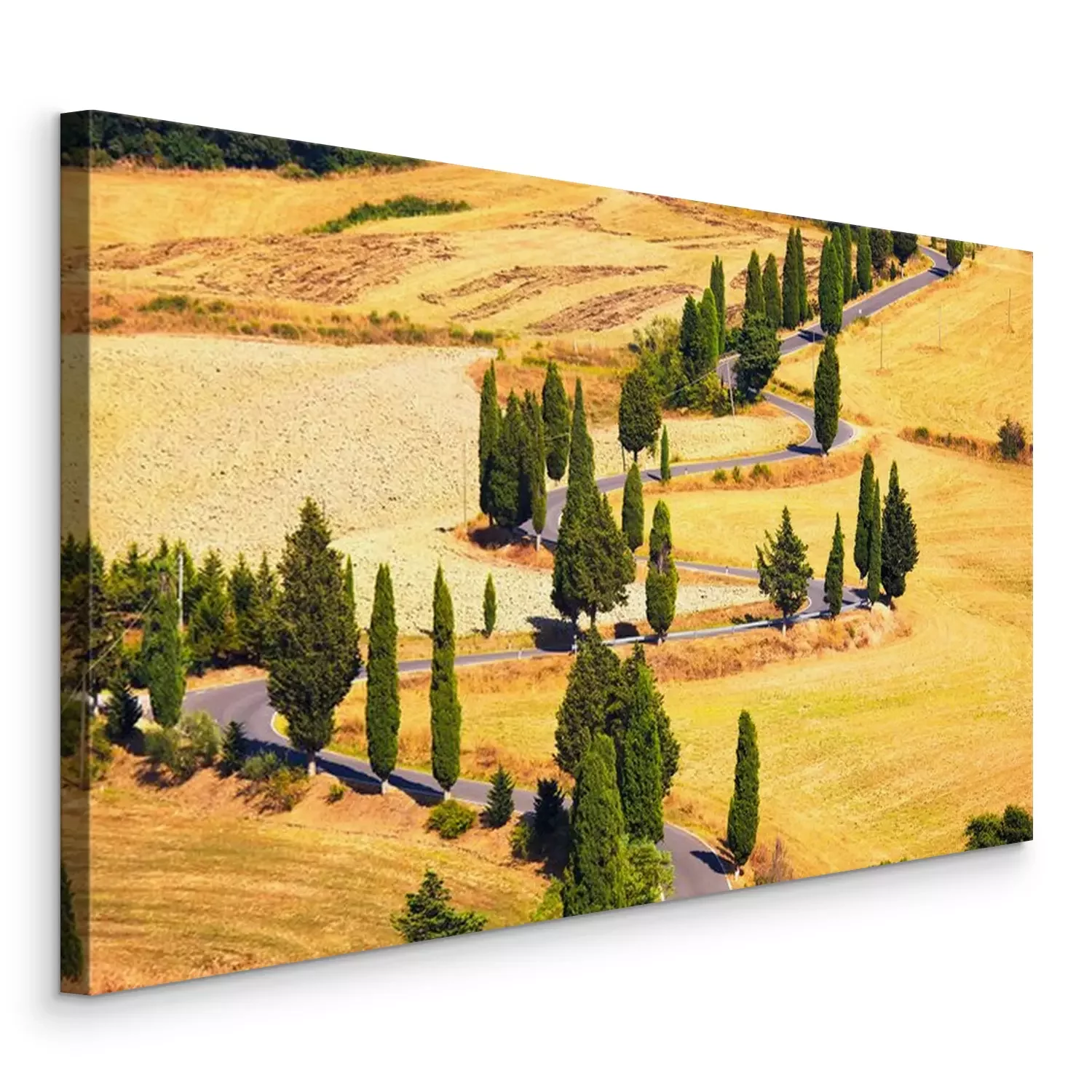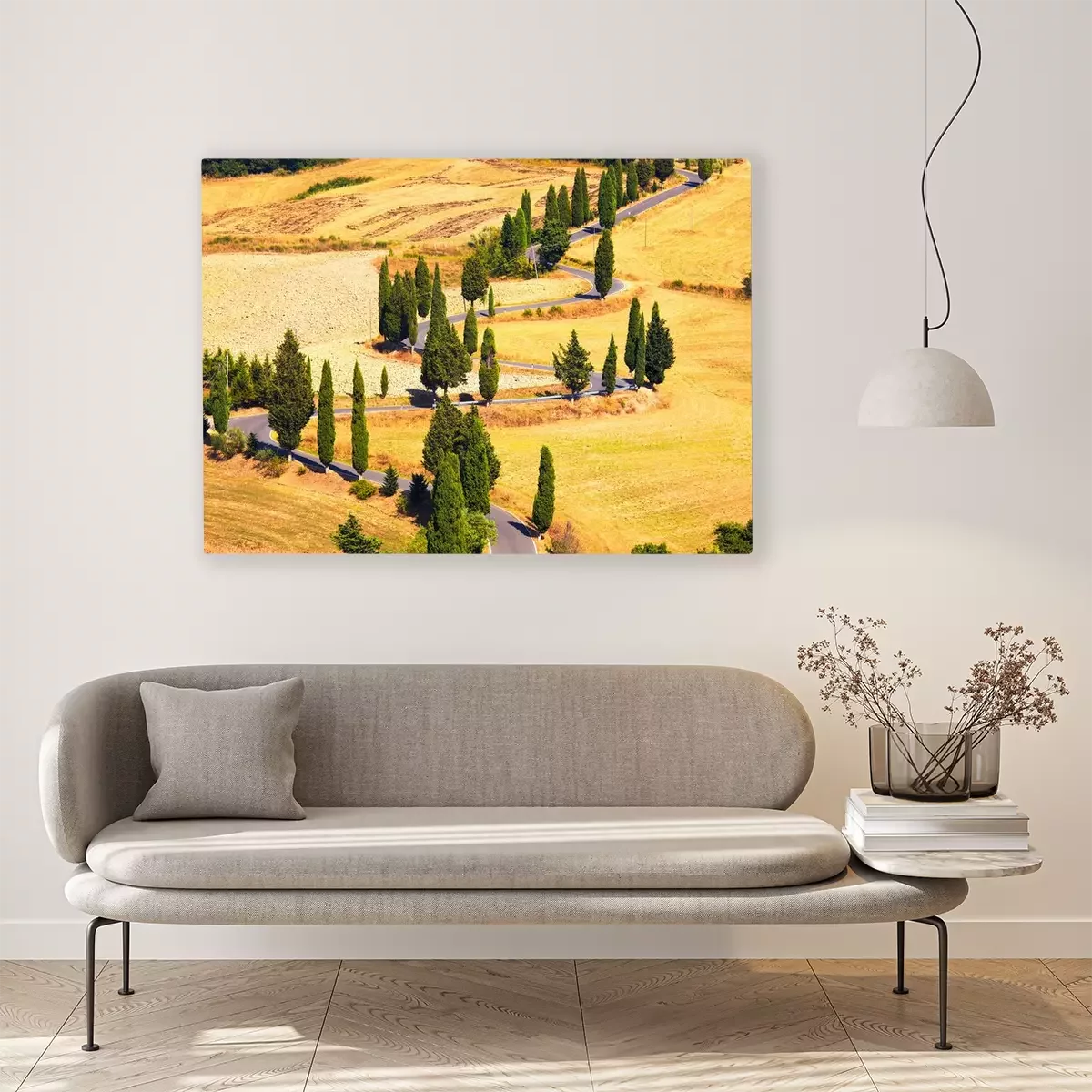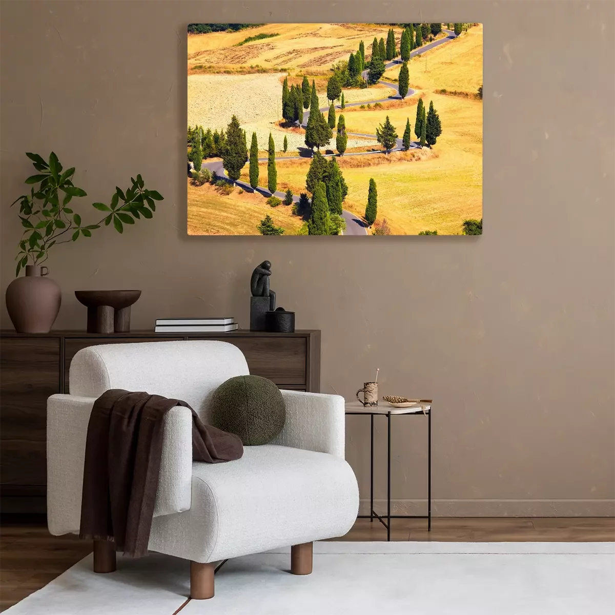 Tableau : Cyprès route panoramique à Monticchiello près de Sienne, en Toscane, je
