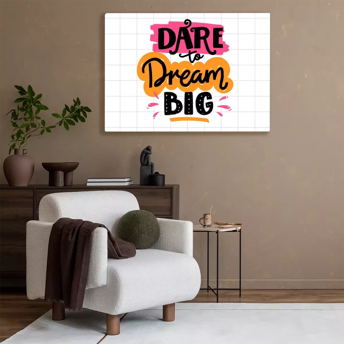 Tableau  Dare to dream big. Positive business quote, handwritten saying. Lettering for printed tees, apparel and motivational posters,