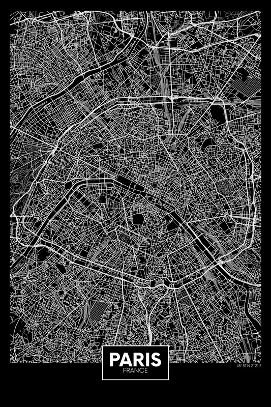 Tableau : Dark Map of Paris (1 Part) Vertical