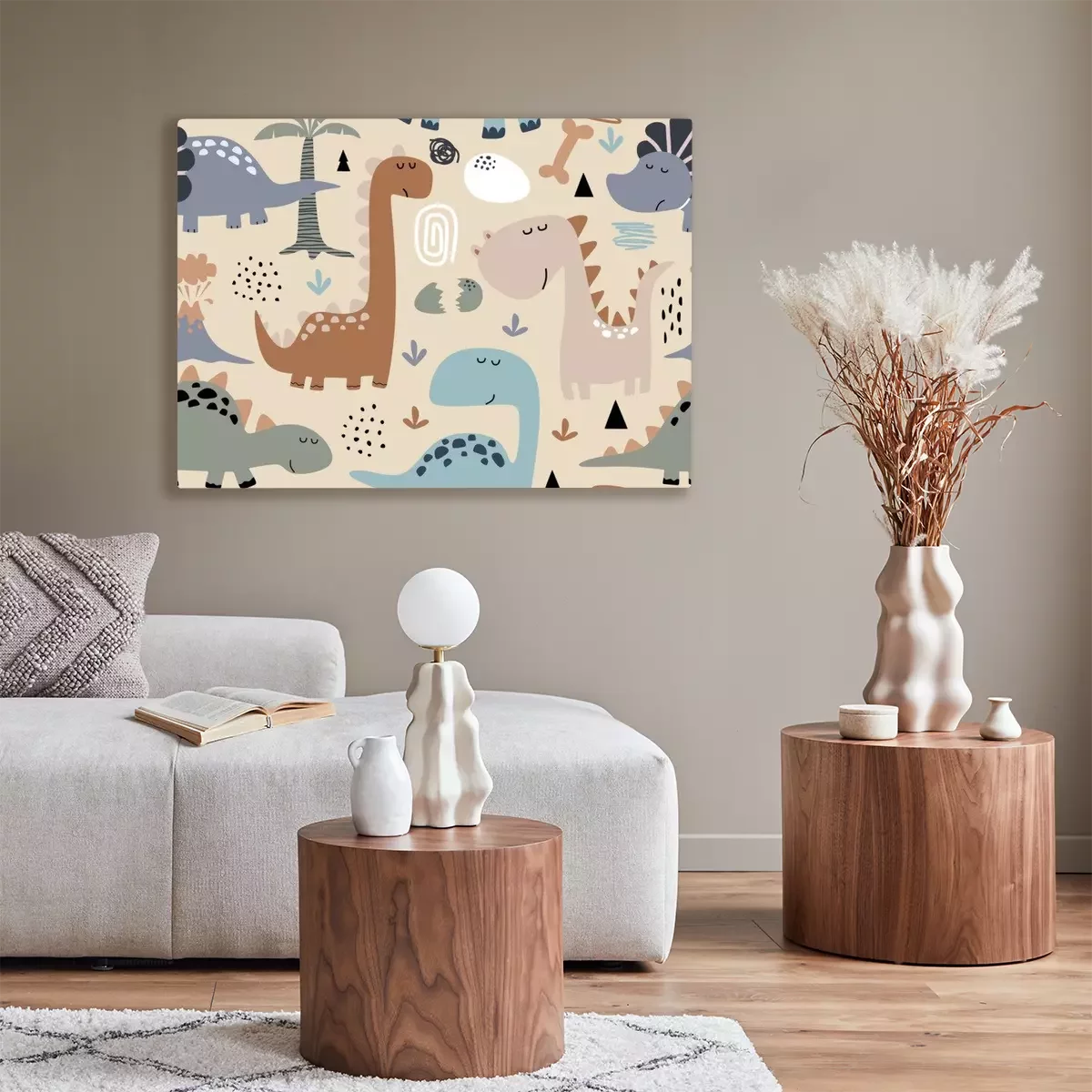 Tableau : De charmants dinosaures dans un style scandinave