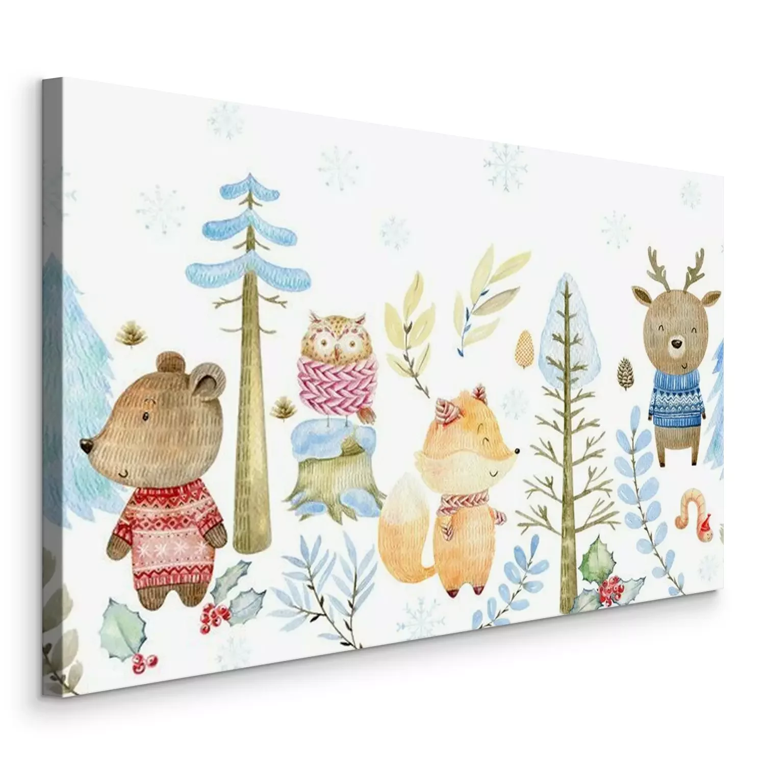Tableau  De mignons animaux mignons dans une forêt en hiver