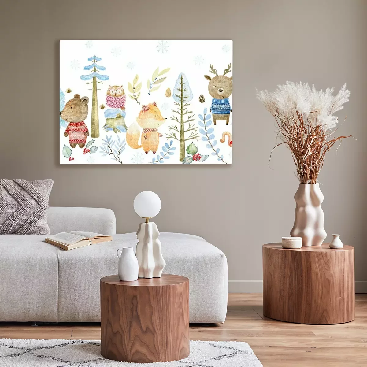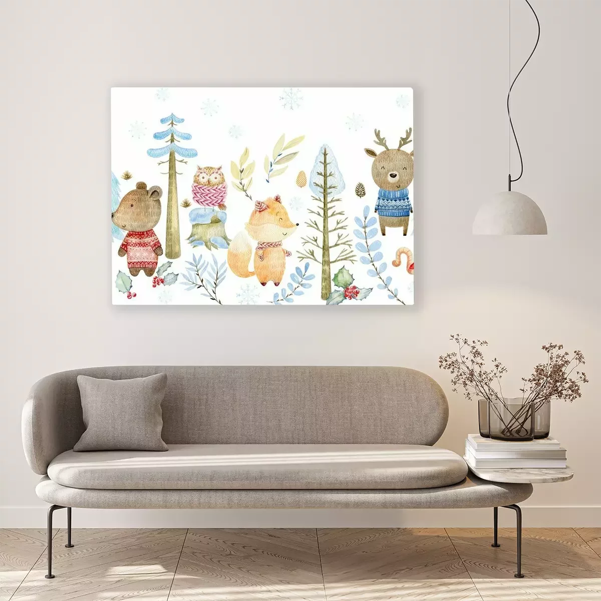 Tableau : De mignons animaux mignons dans une forêt en hiver