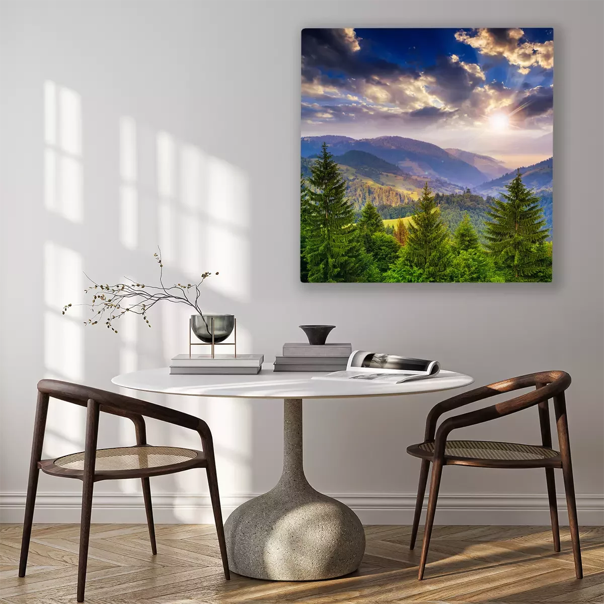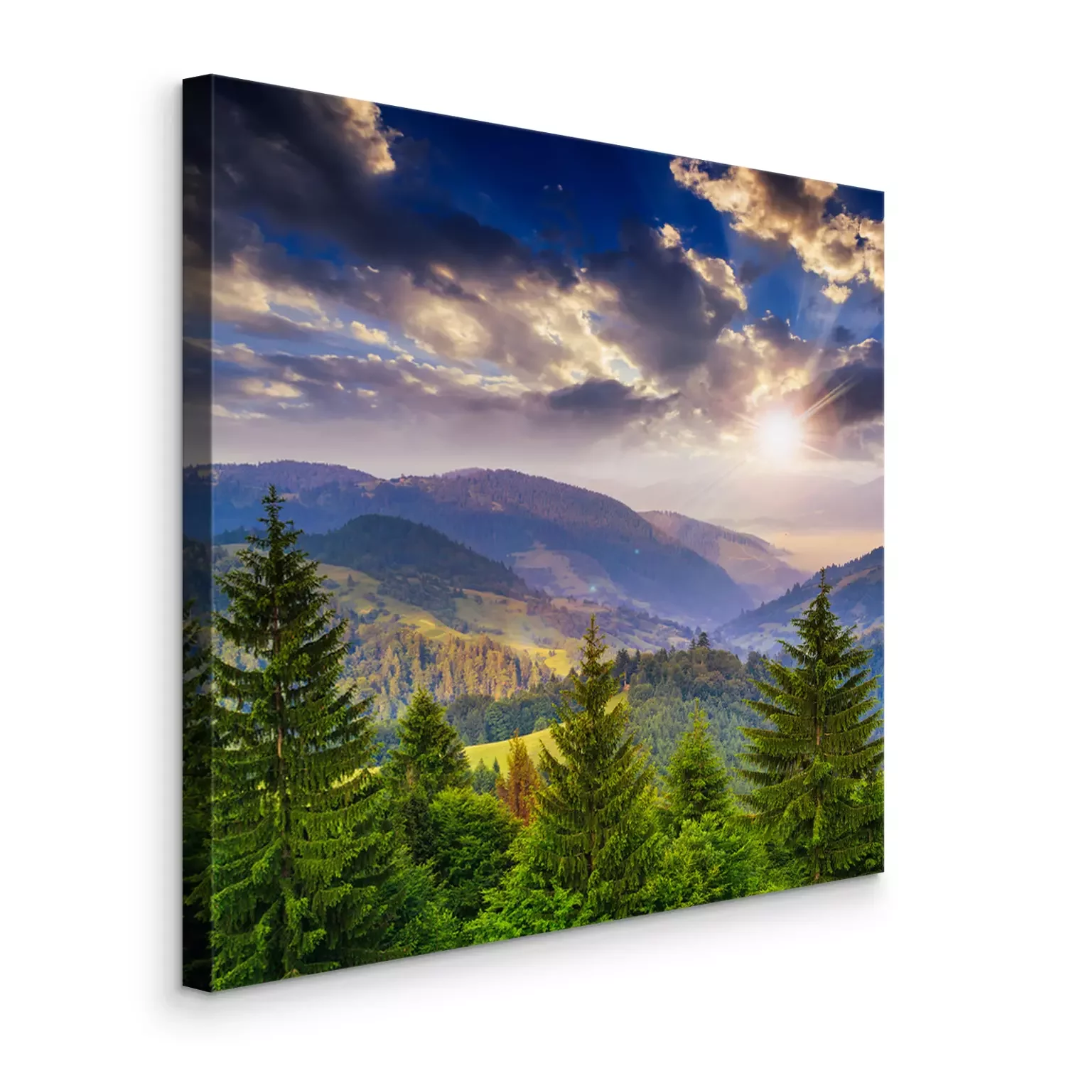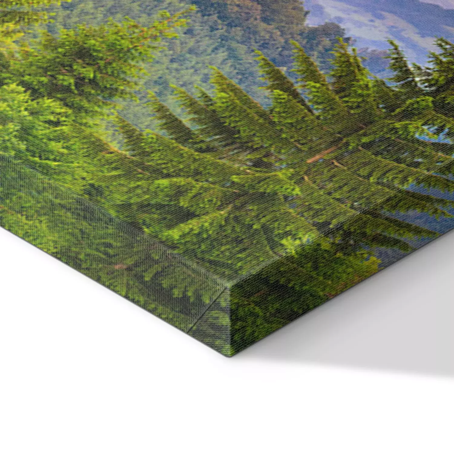 Tableau : de pins à proximité de la vallée dans les montagnes et la forêt à flanc de colline sous