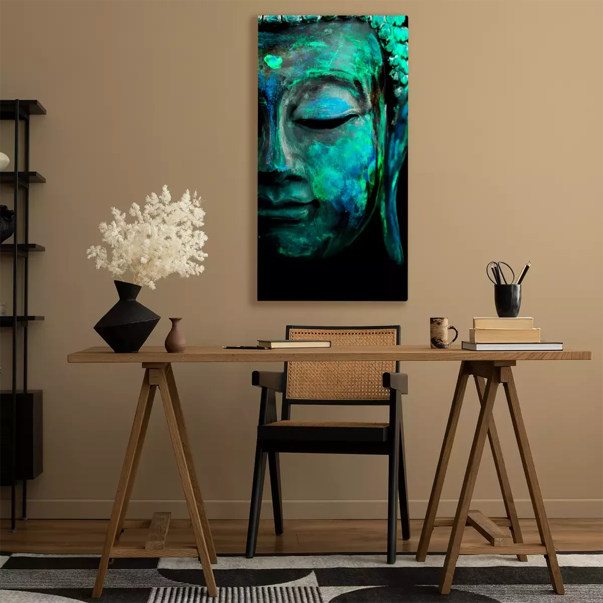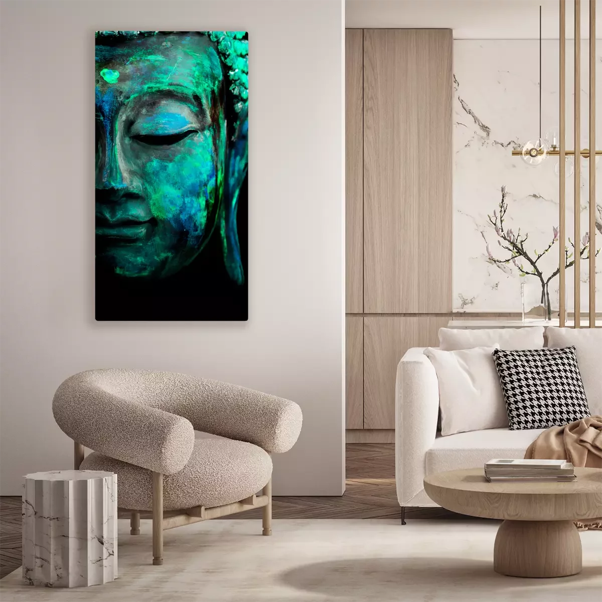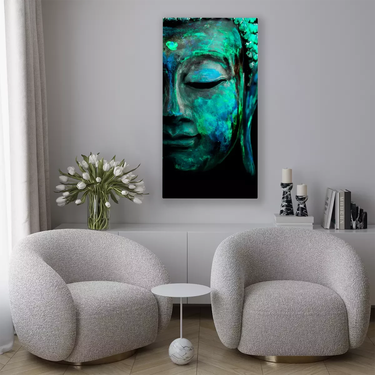 Demi-profil de bouddha bleu turquoise sur fond noir