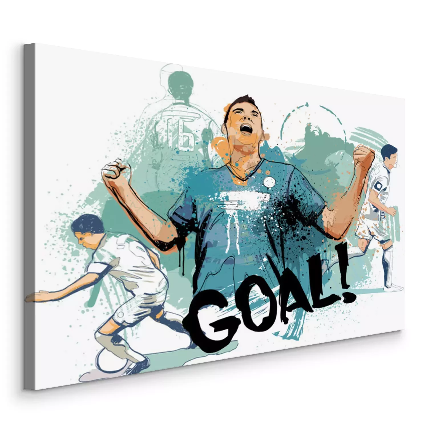 Tableau : Des footballeurs joyeux après un but