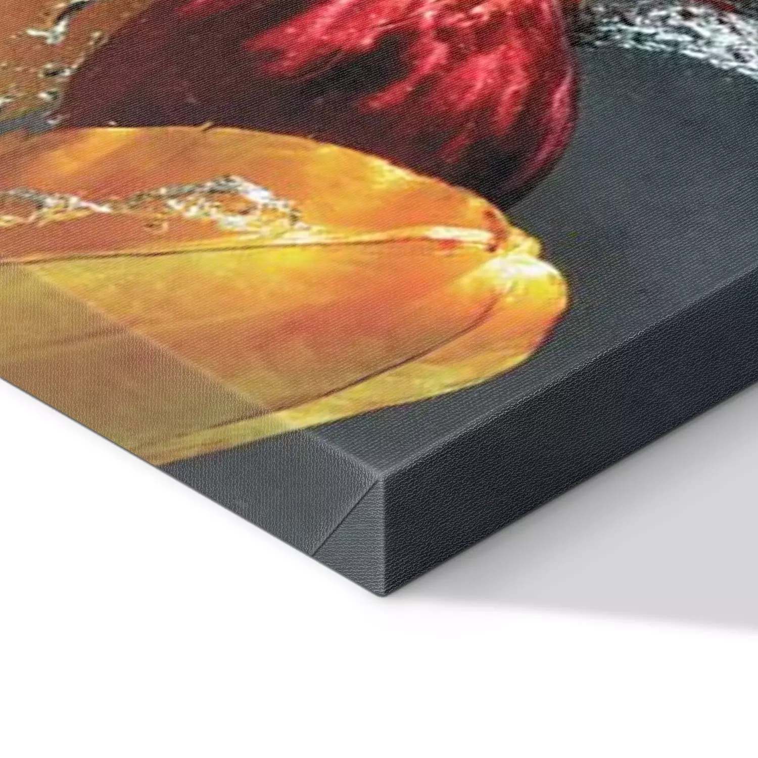 Des fruits colorés tombent de façon dynamique dans l'eau