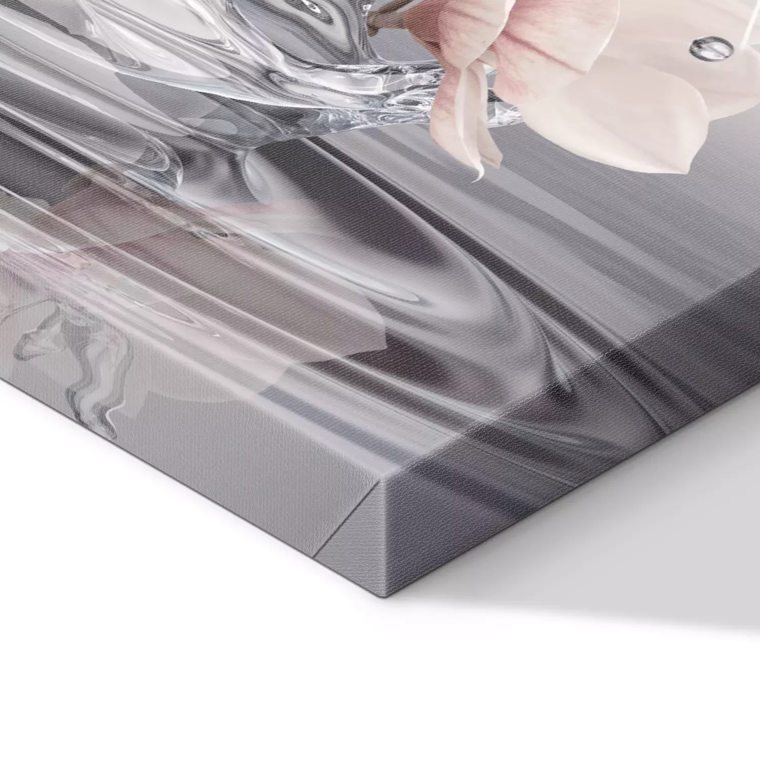 Des magnolias roses se reflètent au-dessus de la surface de l'eau.