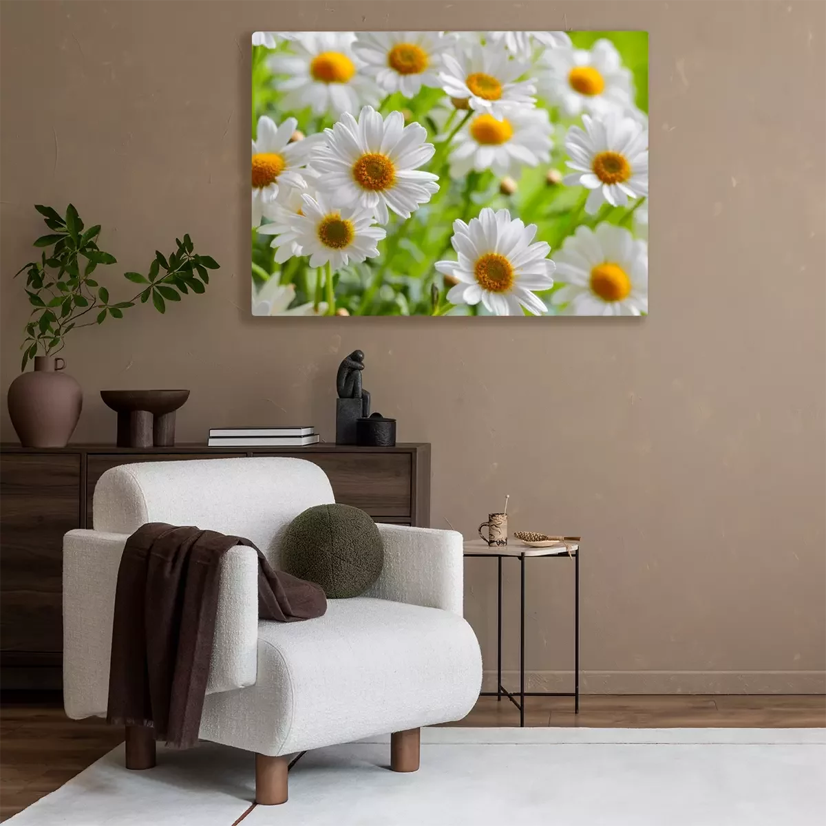 Tableau : Des marguerites dans l'herbe verte