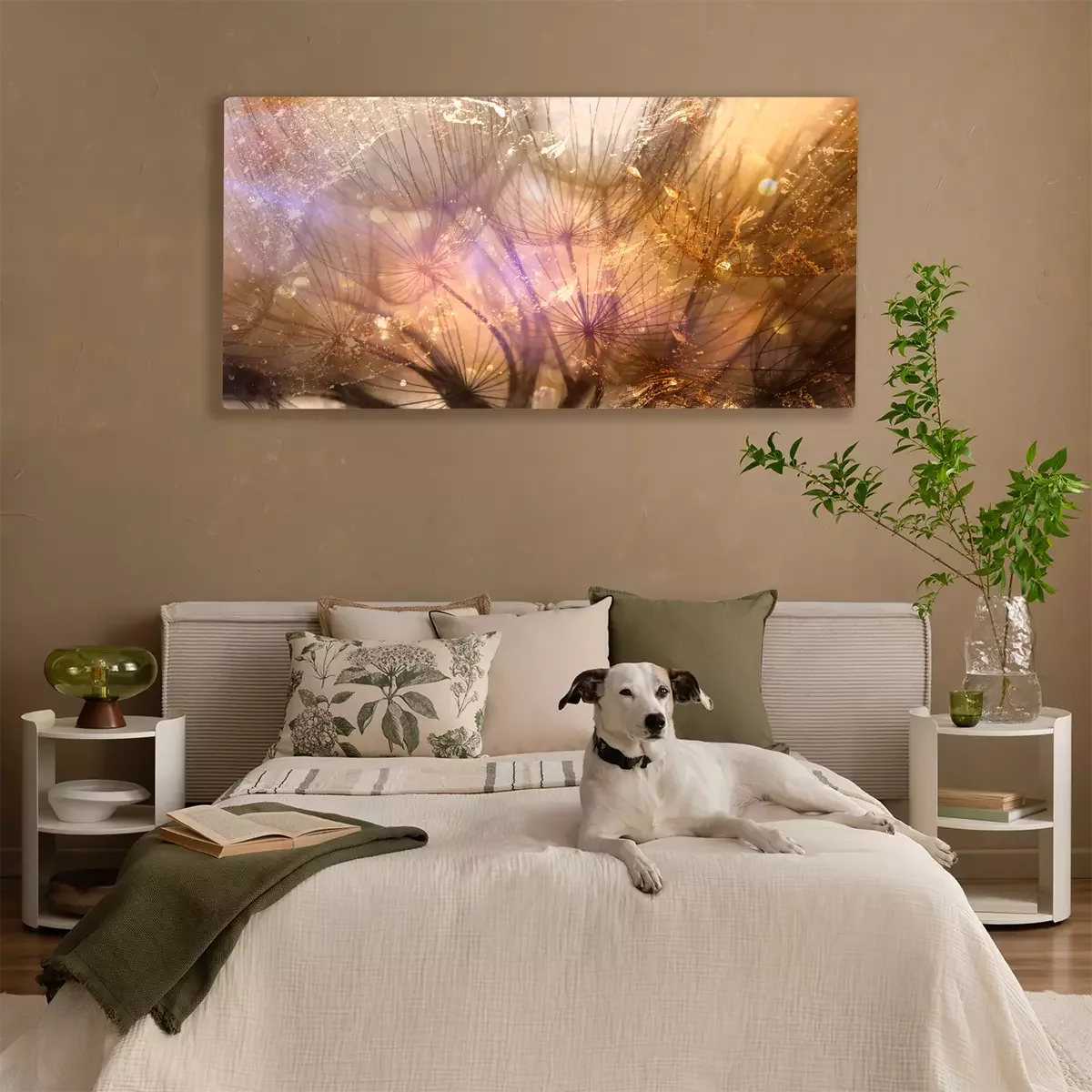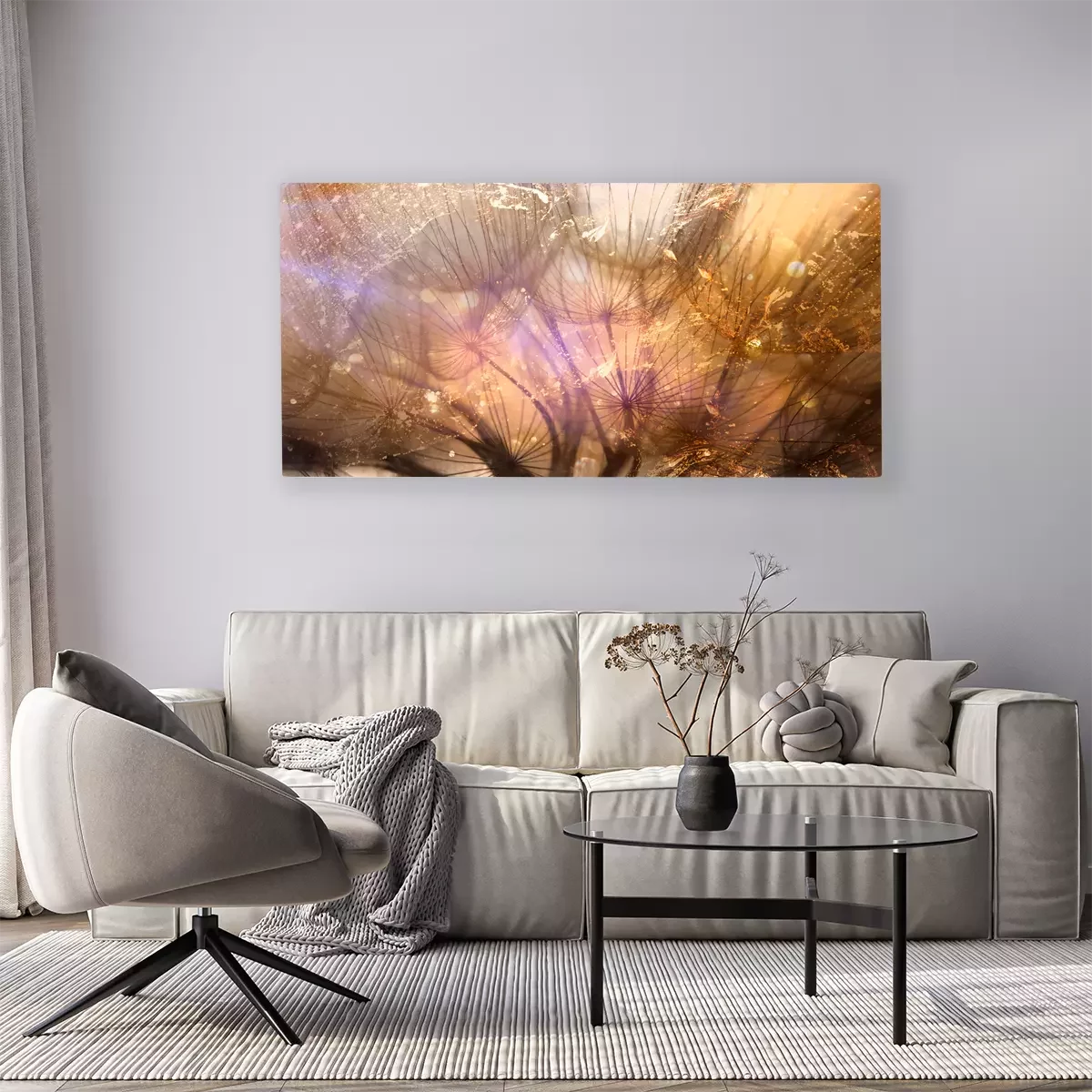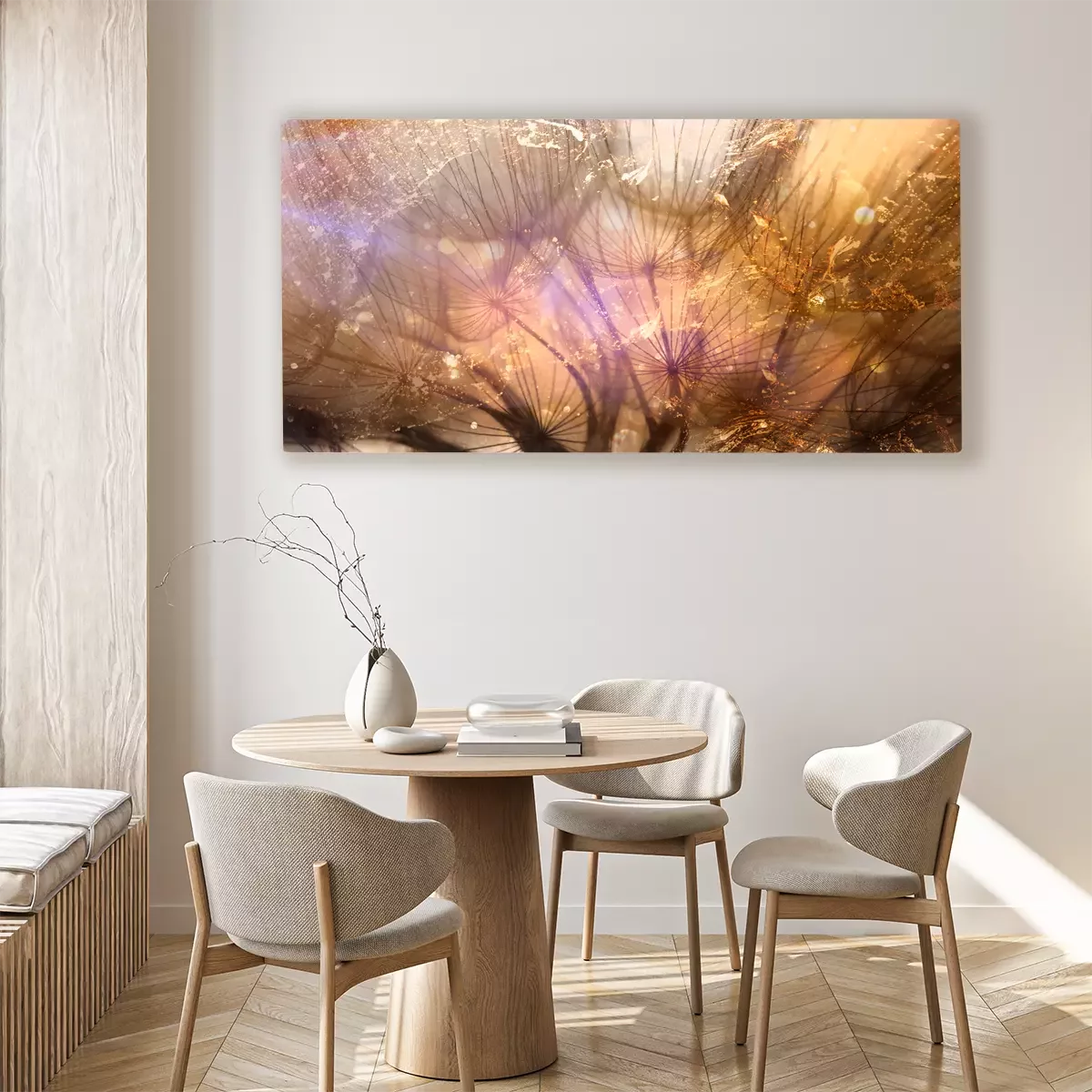 Des pissenlits dorés dans les rayons de lumière