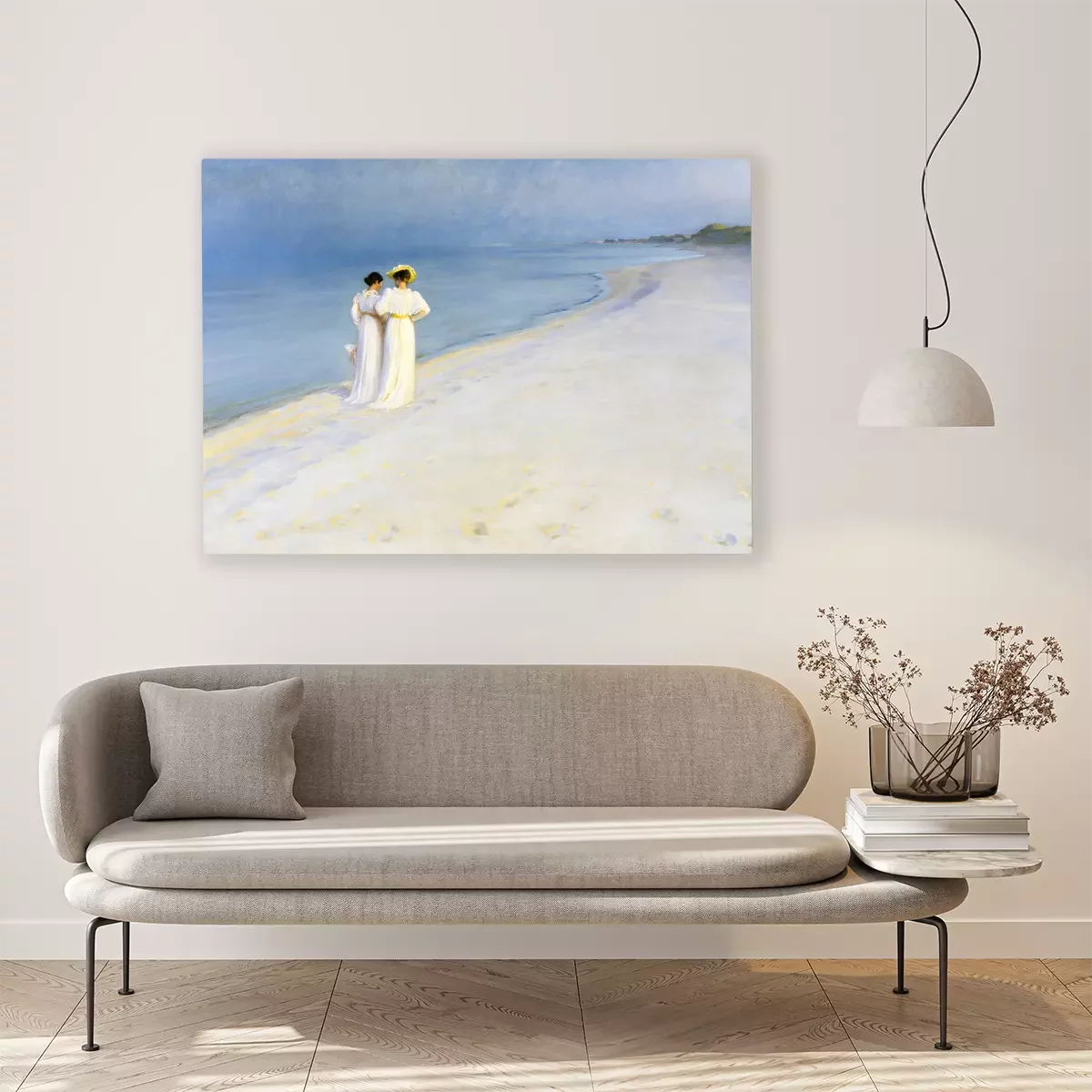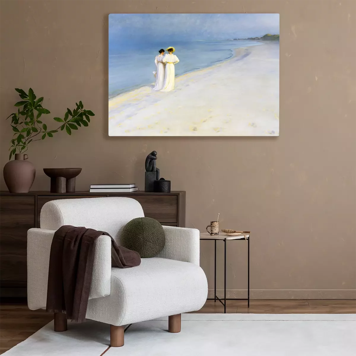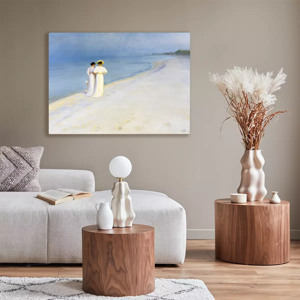 Tableau : Des silhouettes élégantes en robes blanches au bord de la mer