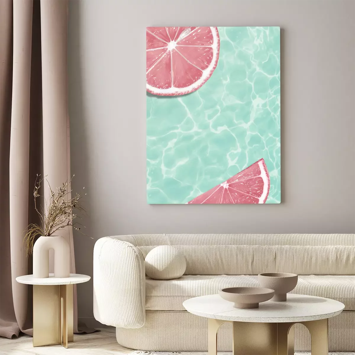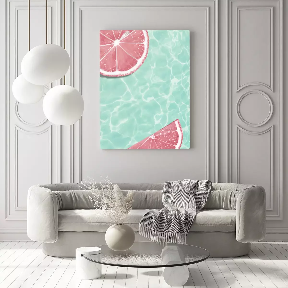 Des tranches de pamplemousse sur fond d'eau turquoise