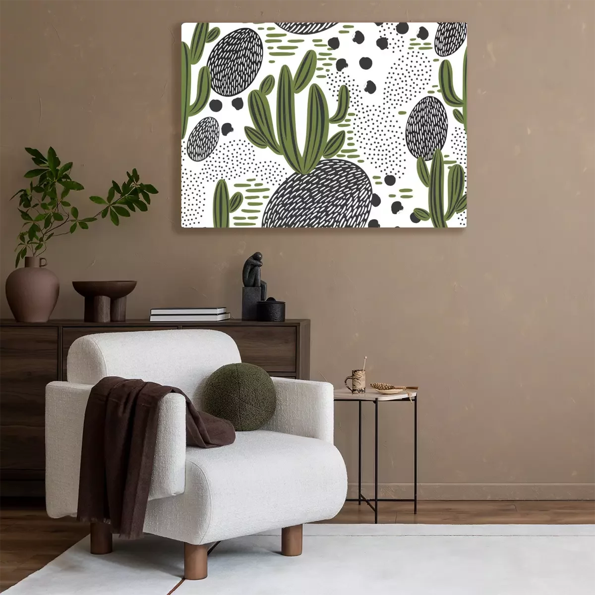 Tableau : Dessin de cactus sur fond blanc