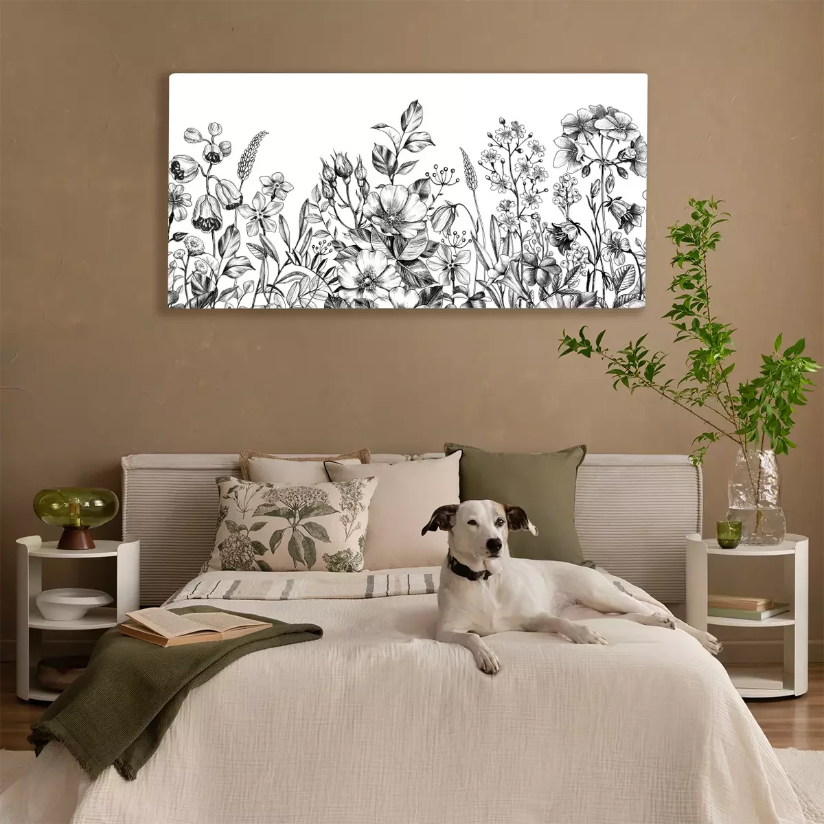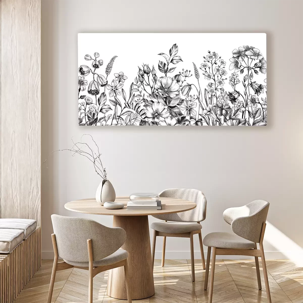 Tableau : Dessin noir et blanc de fleurs sauvages