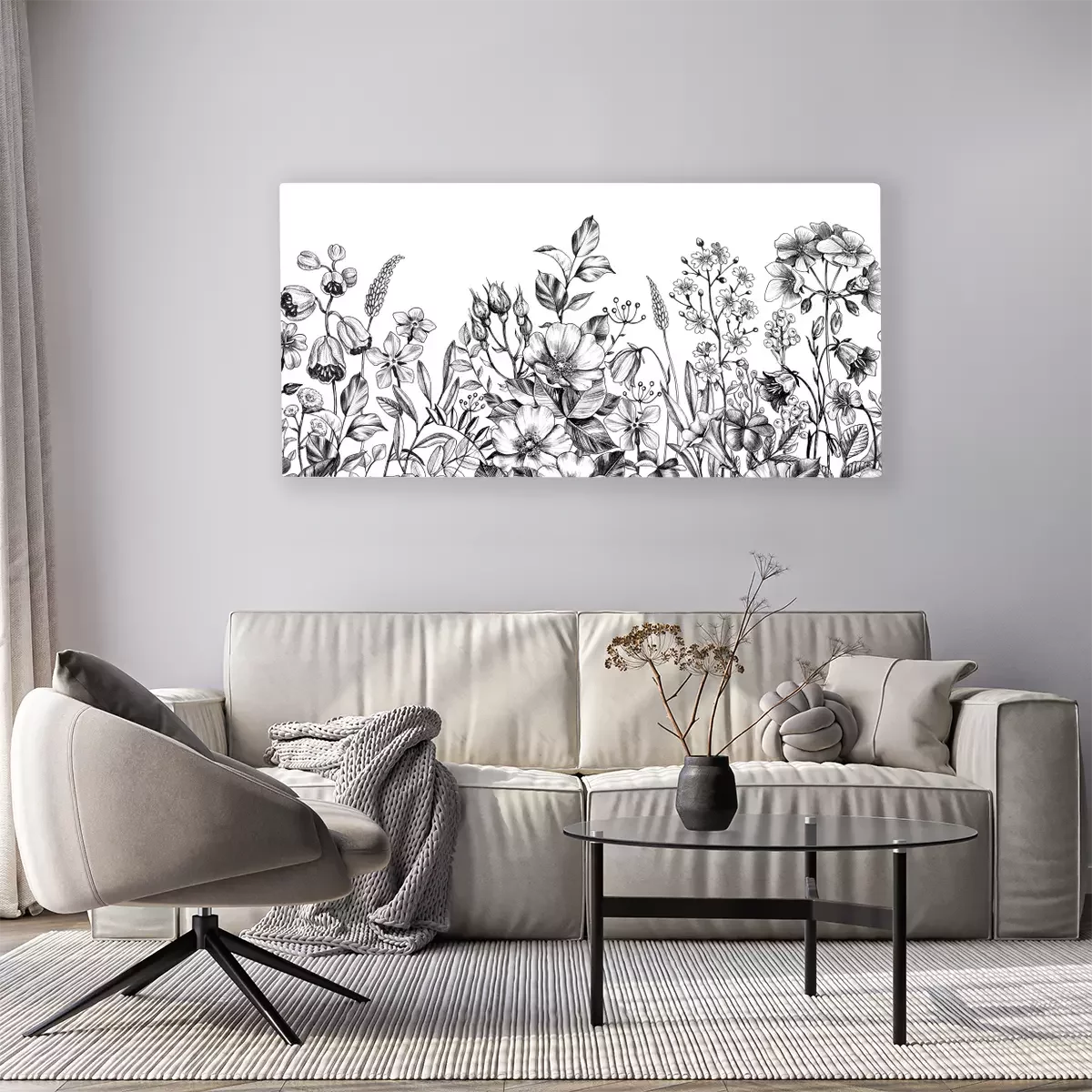 Tableau  Dessin noir et blanc de fleurs sauvages