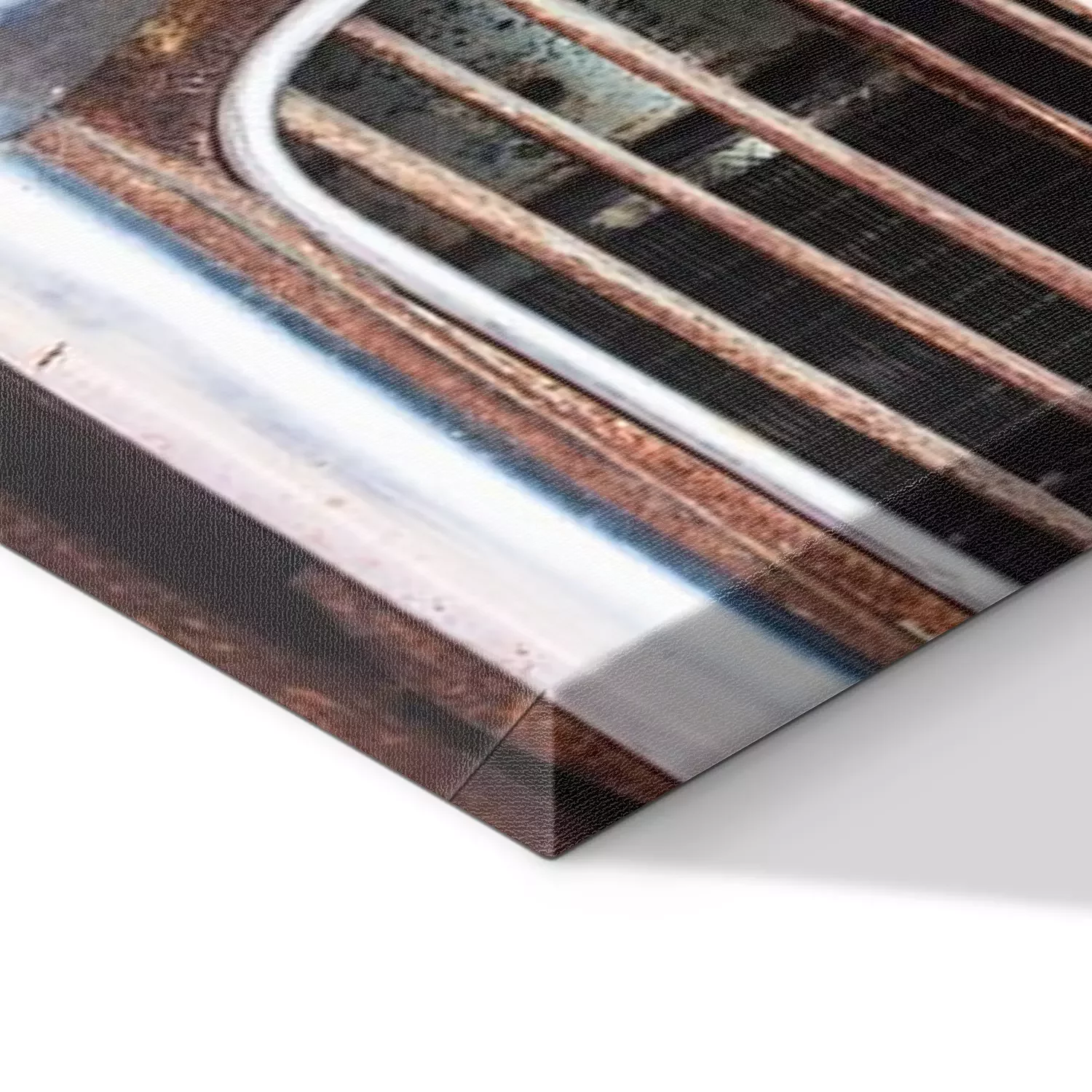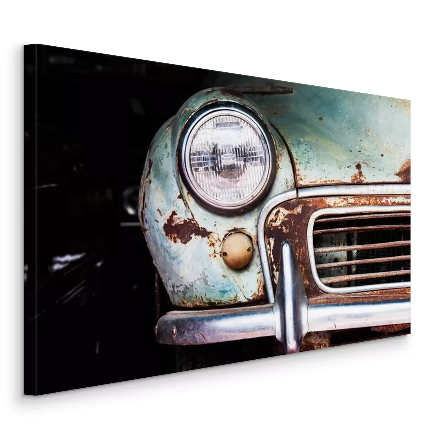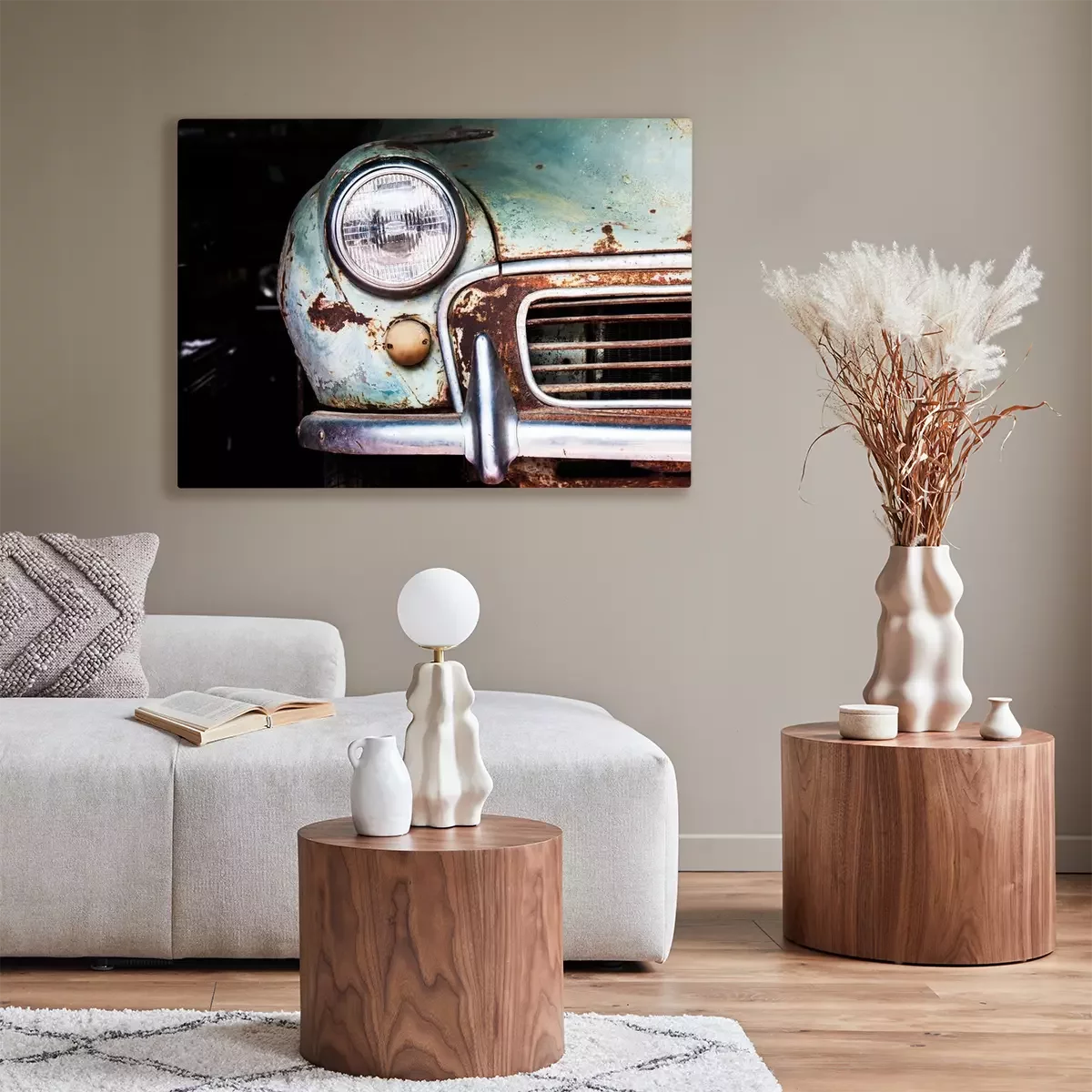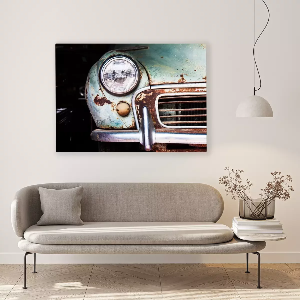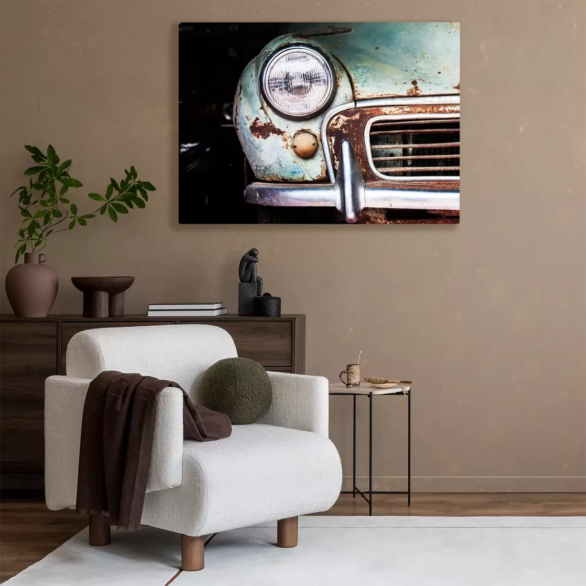 Tableau  Détail de la phare avant d'une vieille voiture dans le garage