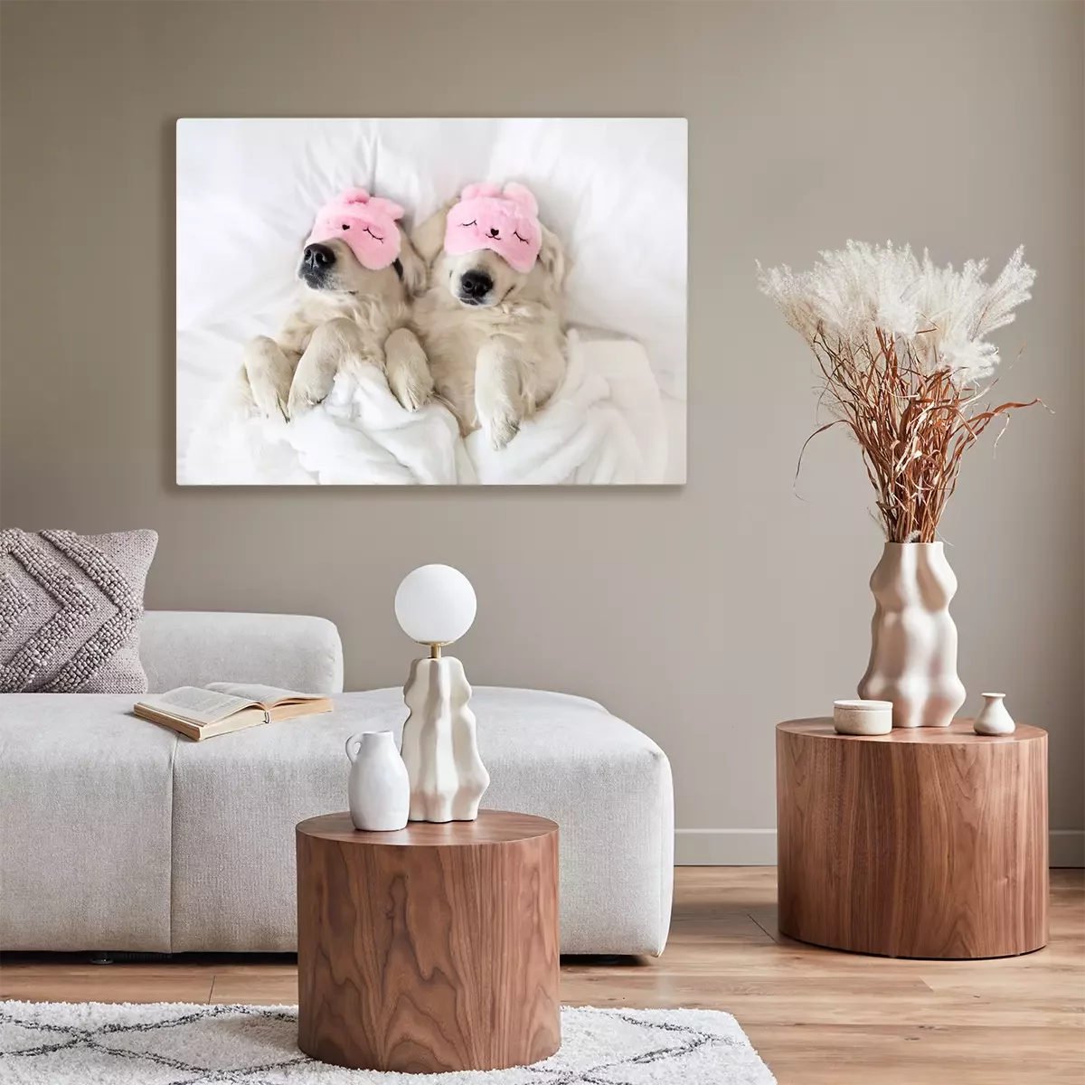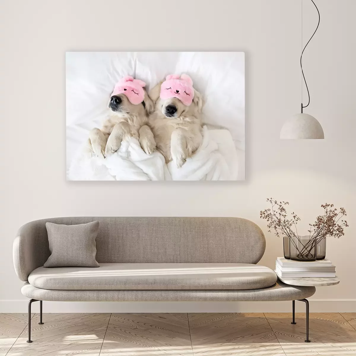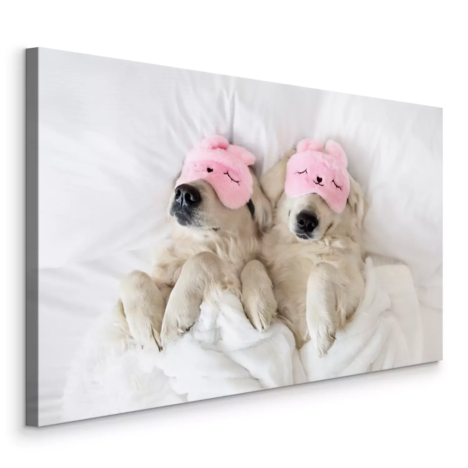 Tableau  Deux golden retrievers dormant dans leur lit