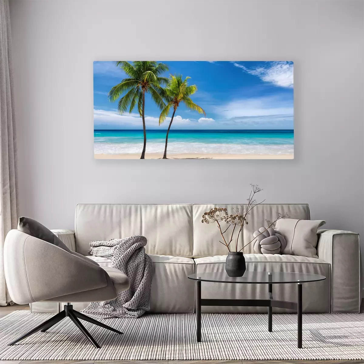 Tableau  Deux palmiers sur une plage ensoleillée