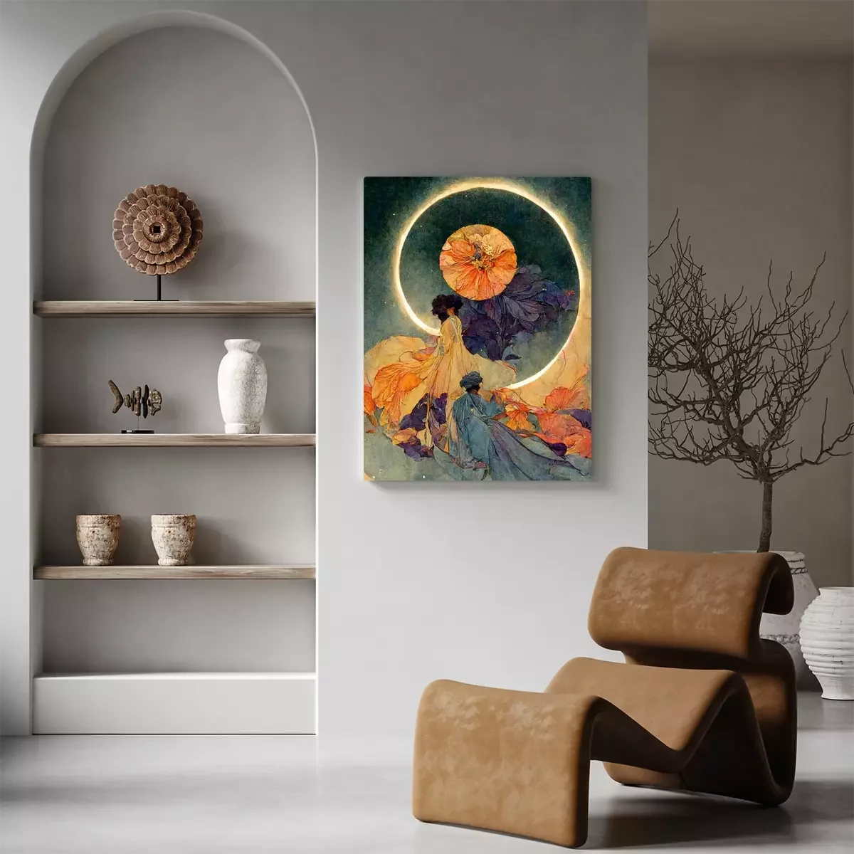 Tableau : Deux personnes et une lumière en spirale