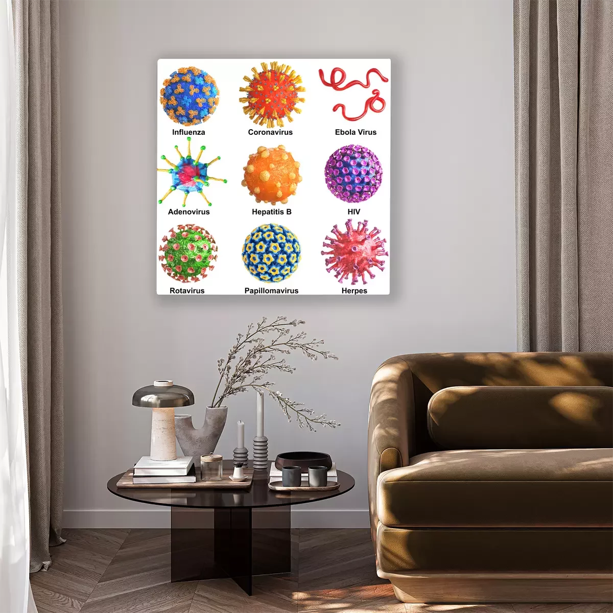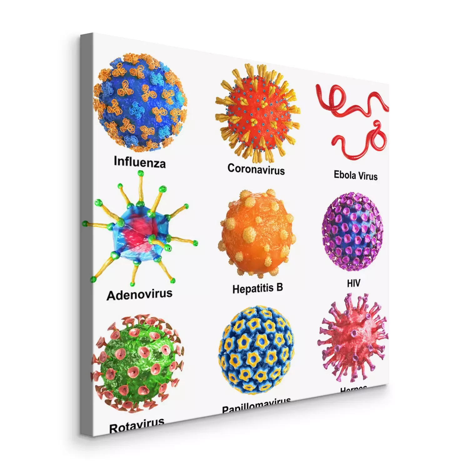 Tableau  Different virus on a white background. 3d illustration