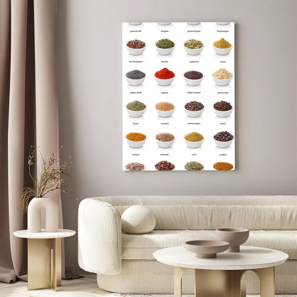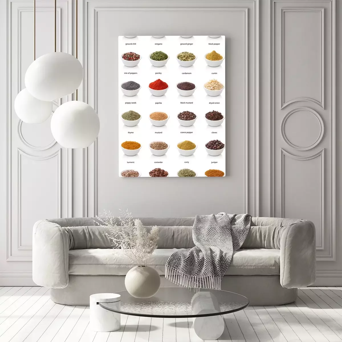 Tableau  Différentes épices isolé sur fond blanc. Grande Image