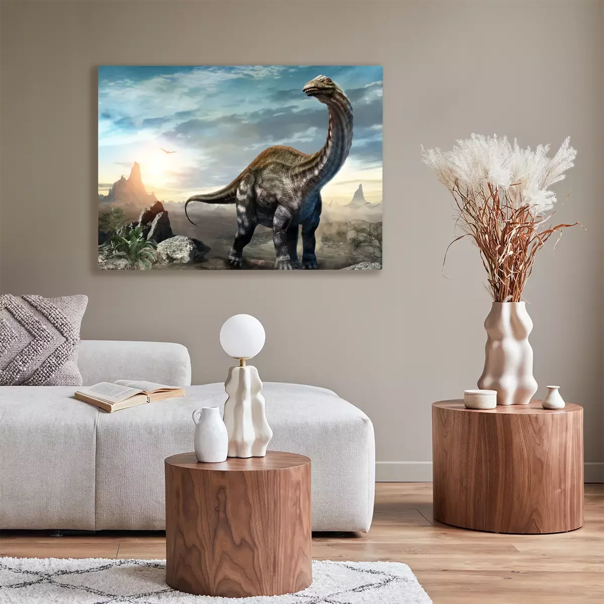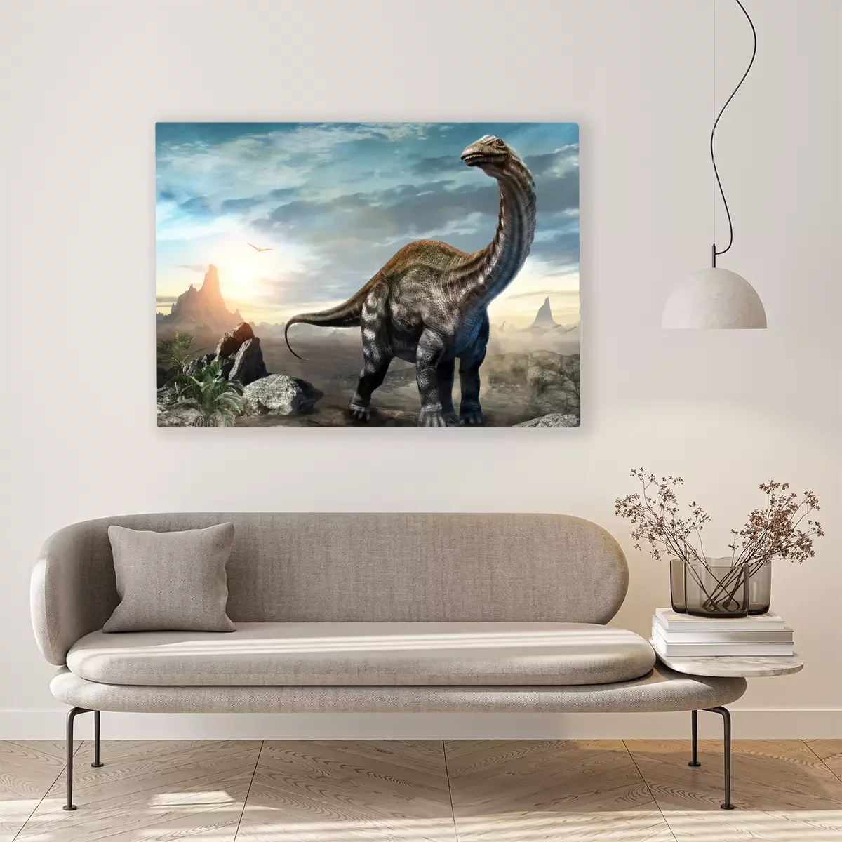 Tableau  Dinosaure Apatosaurus composition 3D avec coucher de soleil