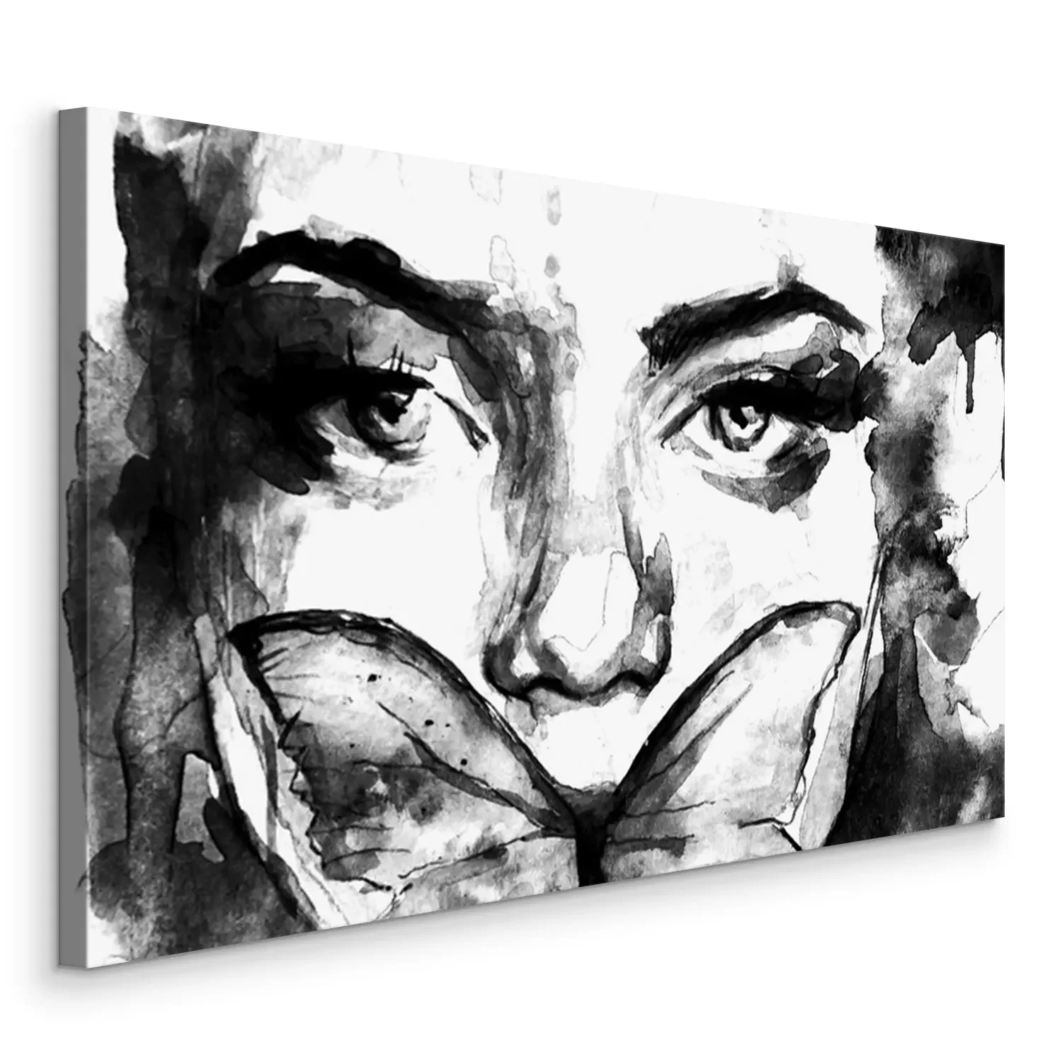 Tableau : Dipinto in acquerello di ritratto in primo piano di donna con una farfalla sul viso