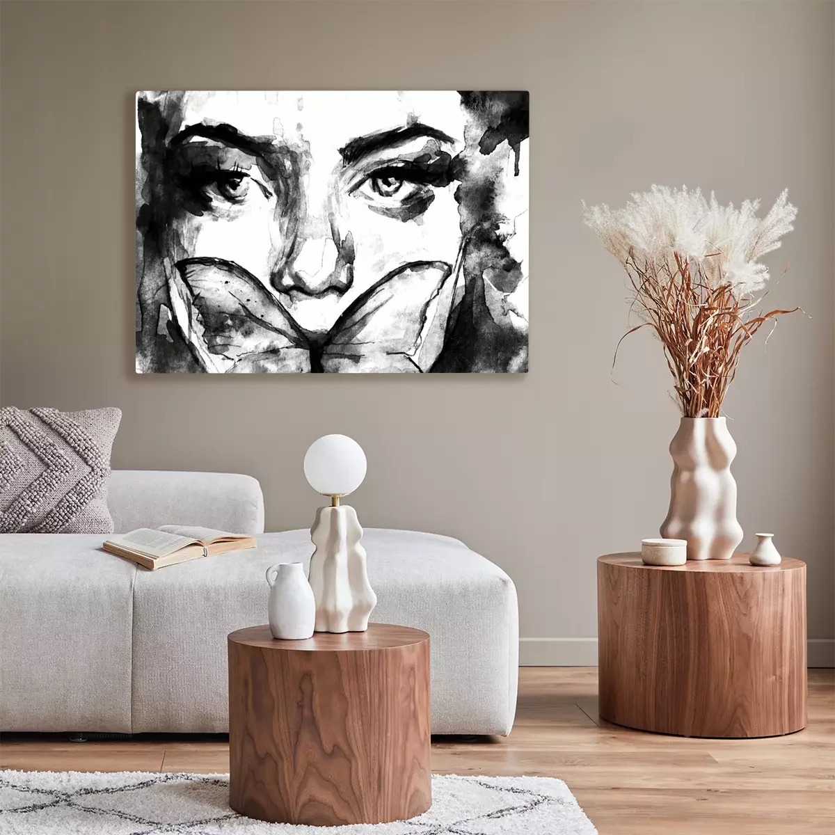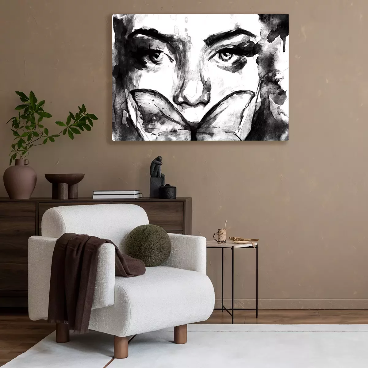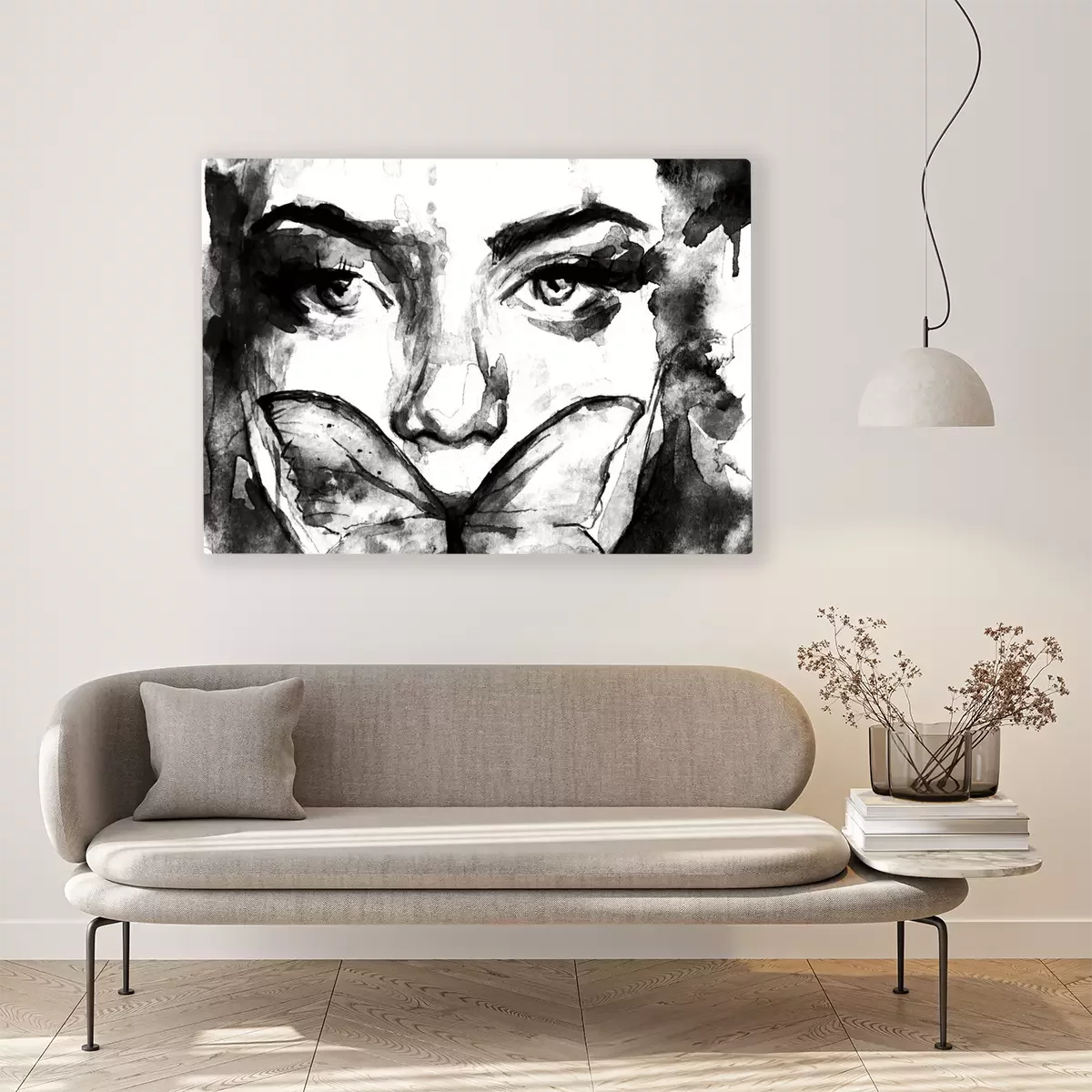 Tableau  Dipinto in acquerello di ritratto in primo piano di donna con una farfalla sul viso