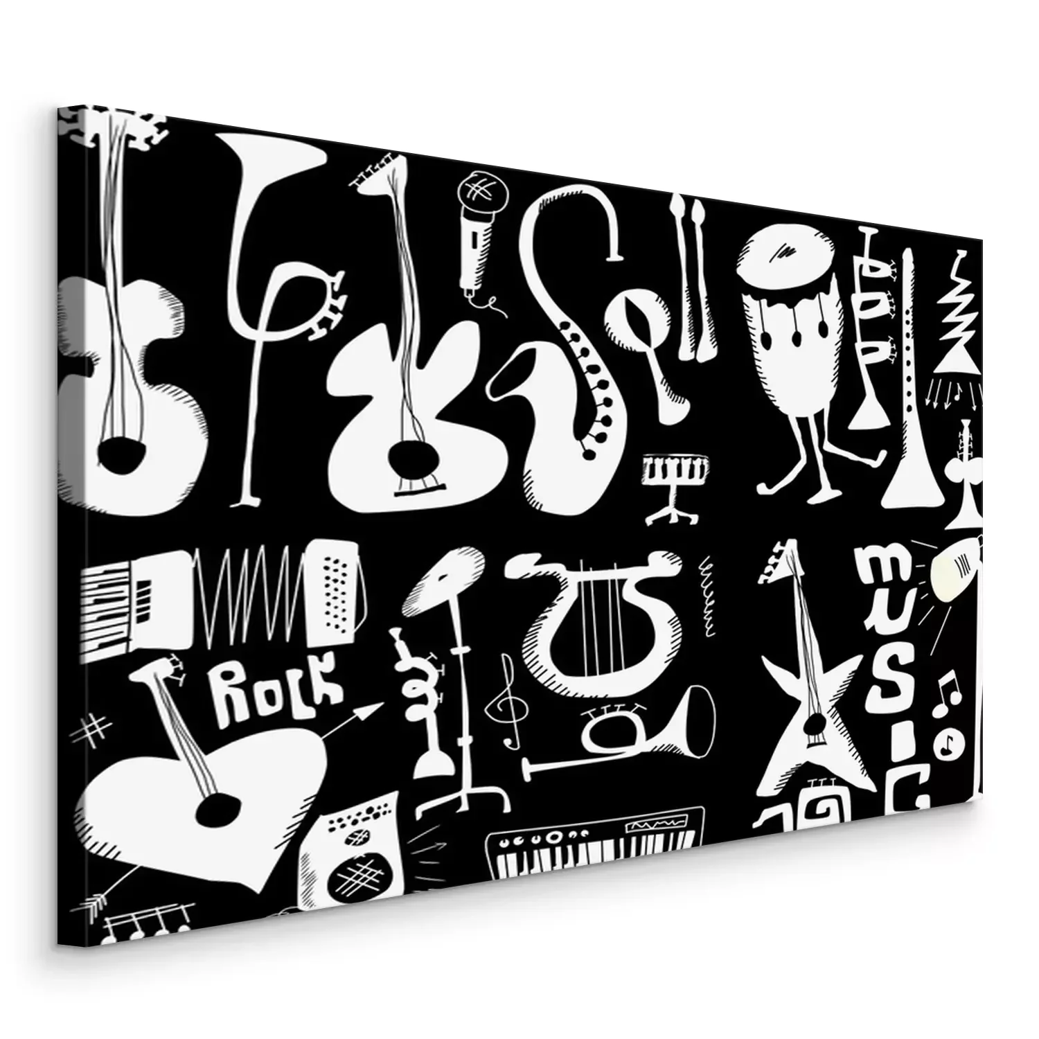 Tableau  doodles instruments de musique musique drôle isolé sur fond noir
