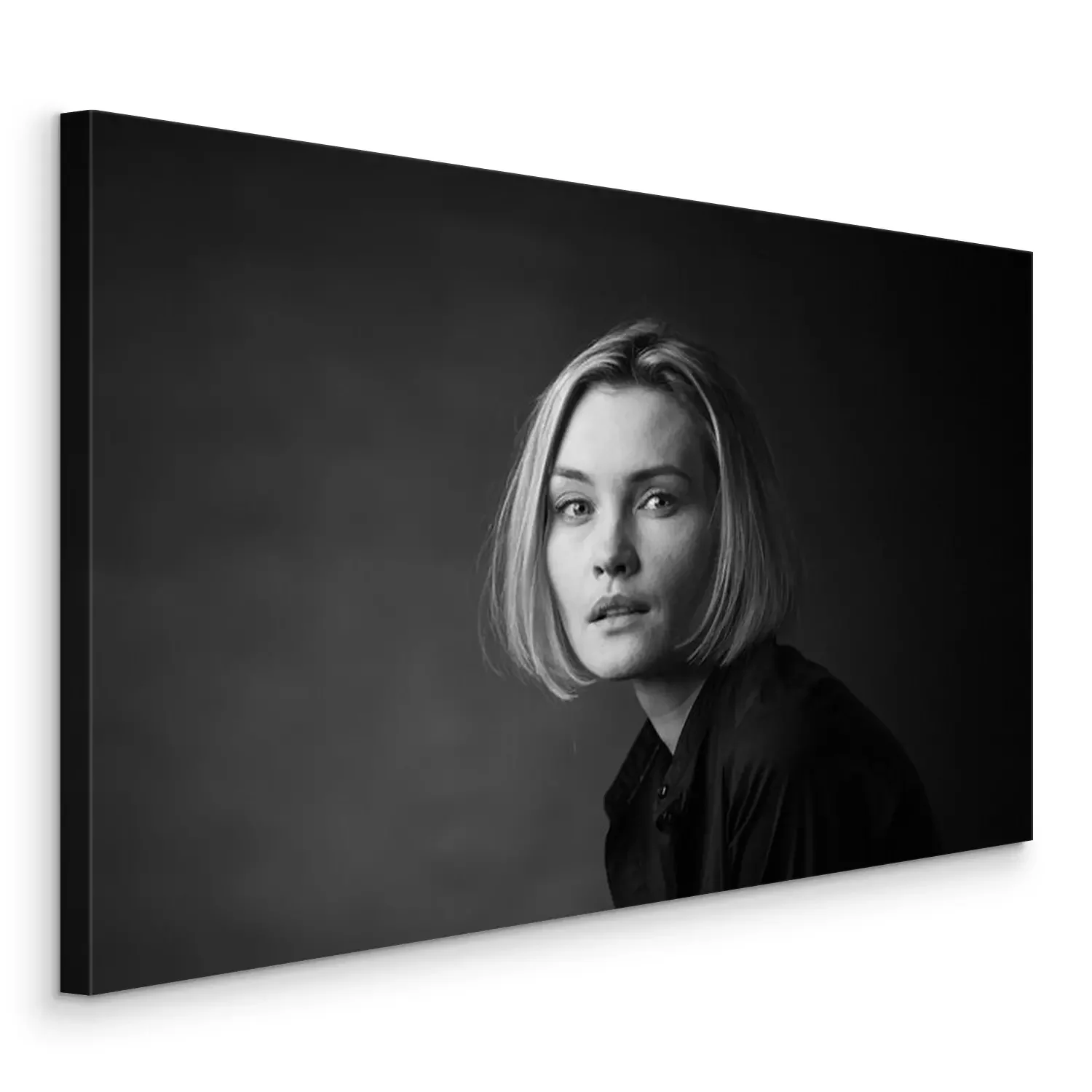 Tableau : Dramatic black and white portrait of a beautiful woman on a dark background