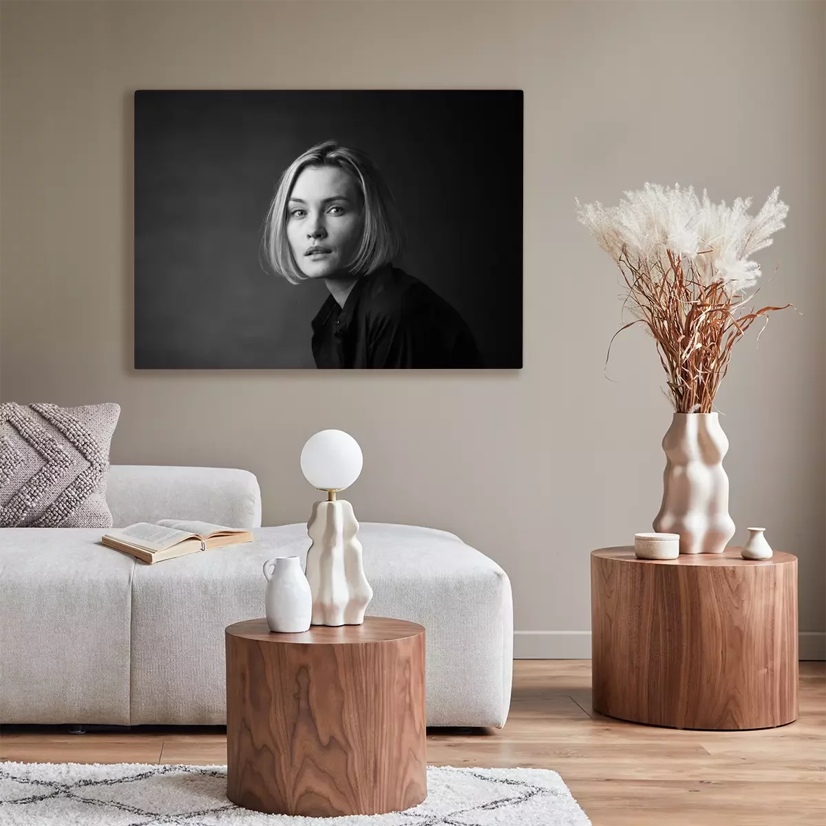 Tableau  Dramatic black and white portrait of a beautiful woman on a dark background