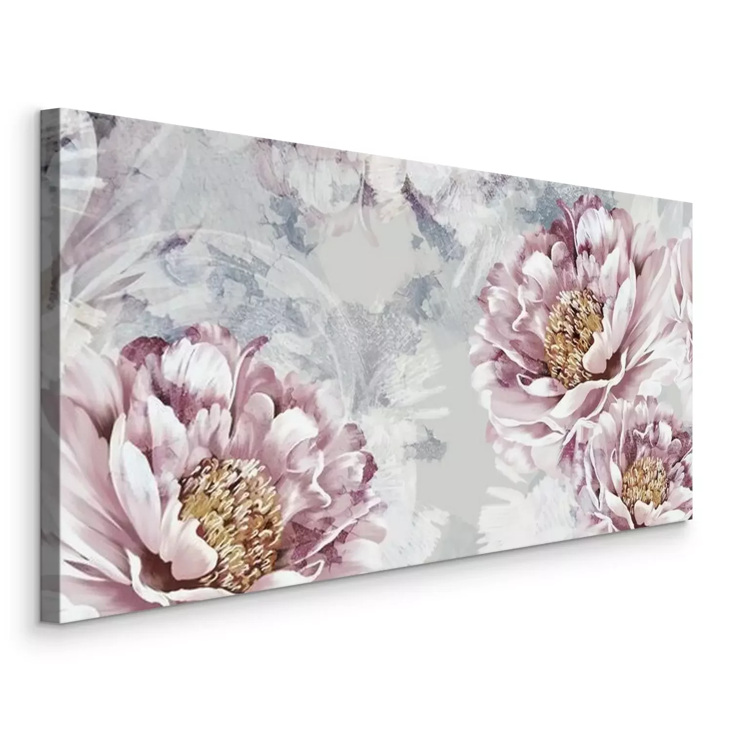 Tableau : Drawn art peonies on a textured background with imitation of paint and stains, wall murals in a room or home interior