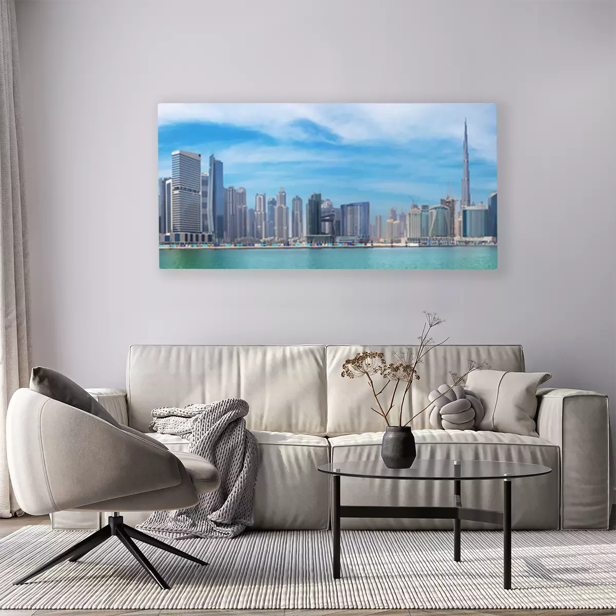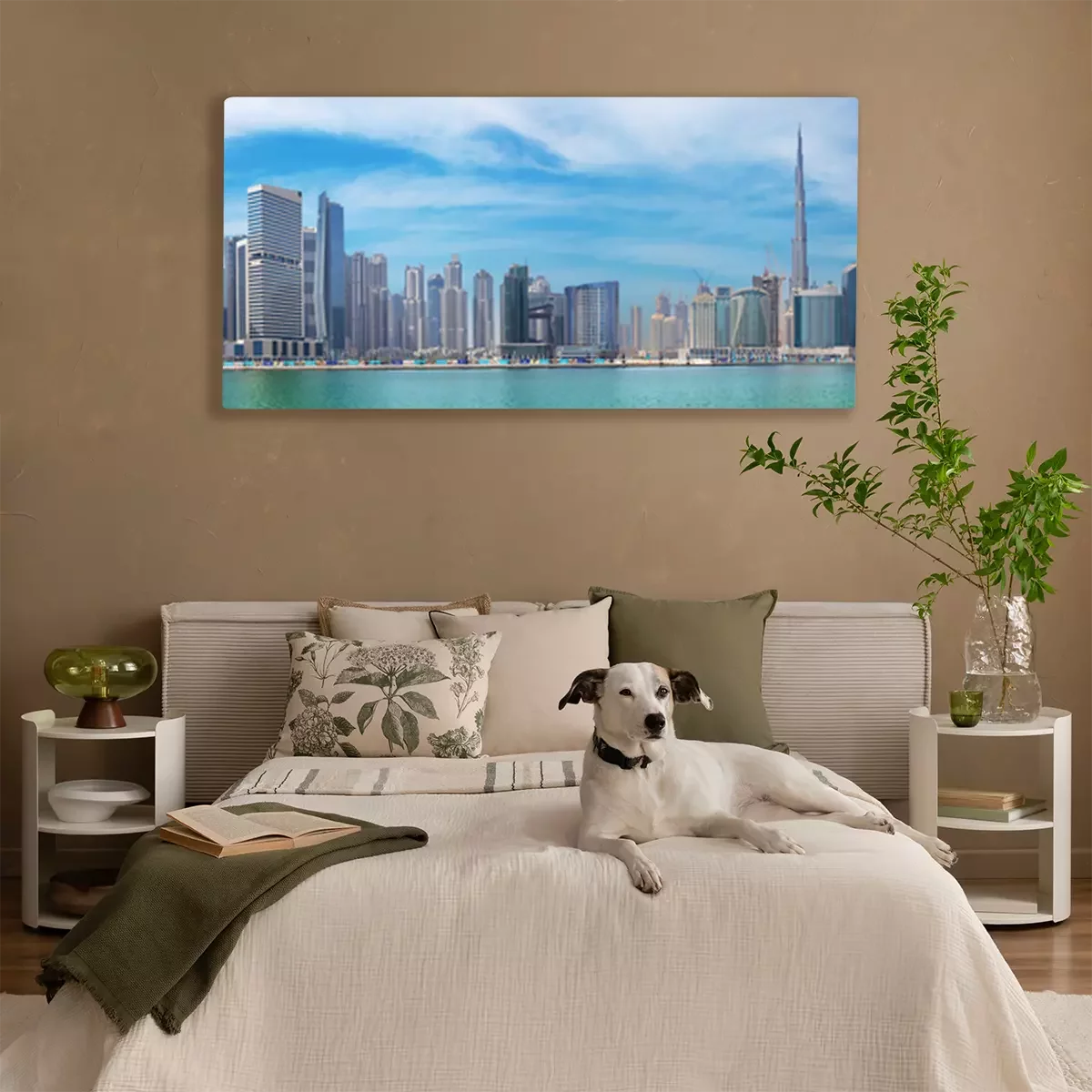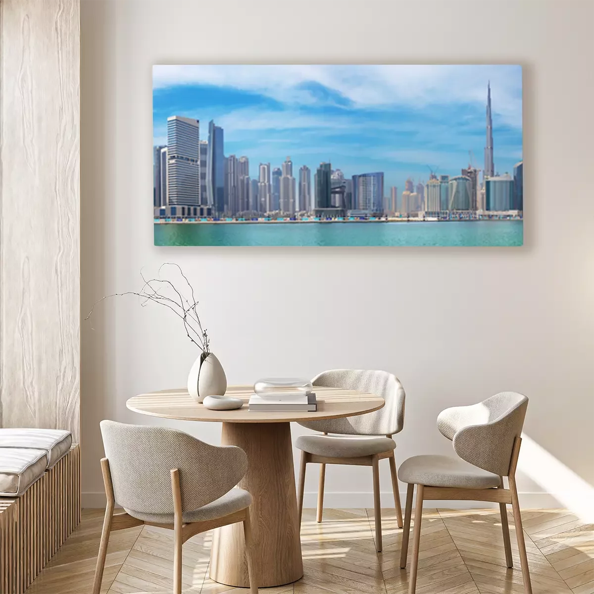 Tableau  DUBAI, Émirats arabes unis - le 29 mars 2017: le panorama avec le nouveau canal et les gratte-ciel du centre-ville.