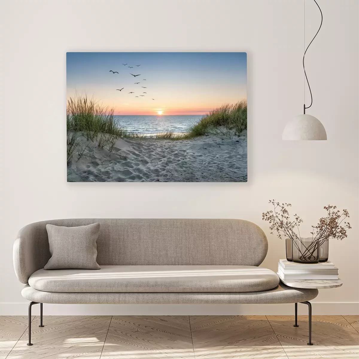 Tableau : Dunes de sable au bord de la mer et coucher de soleil