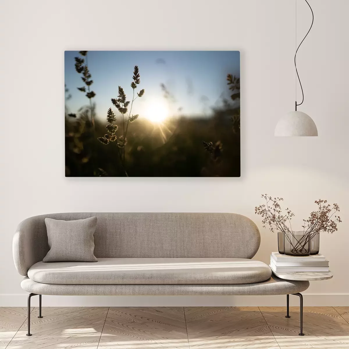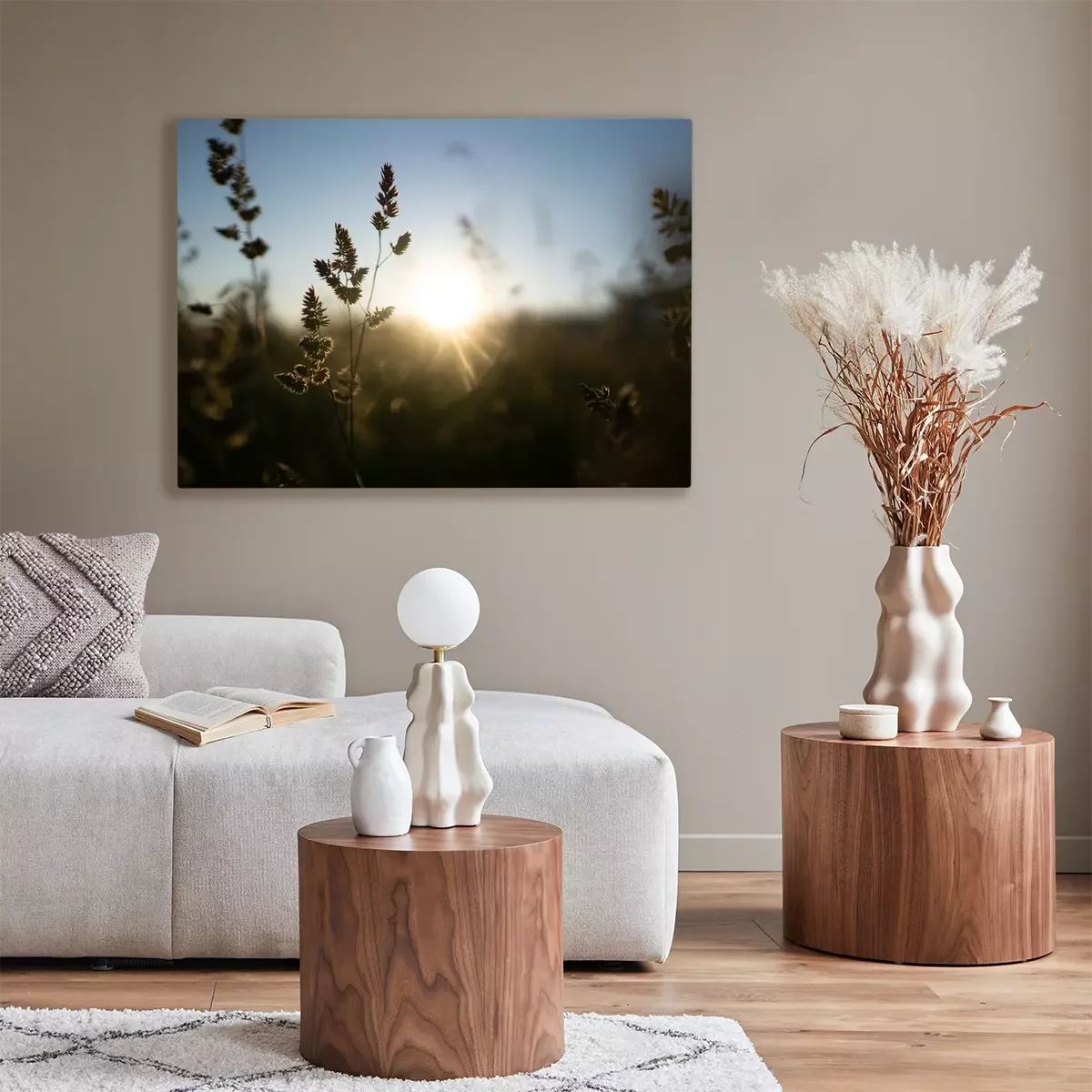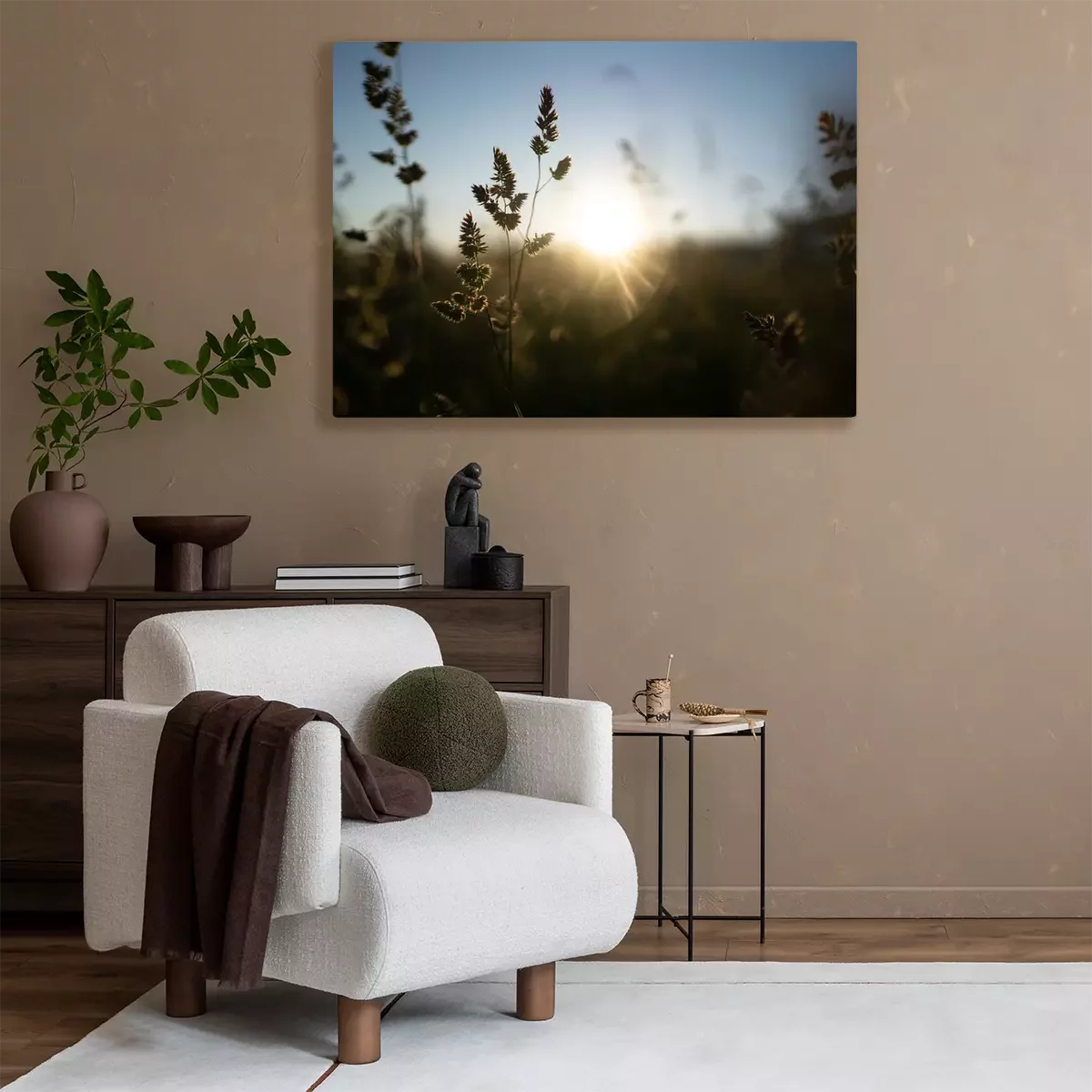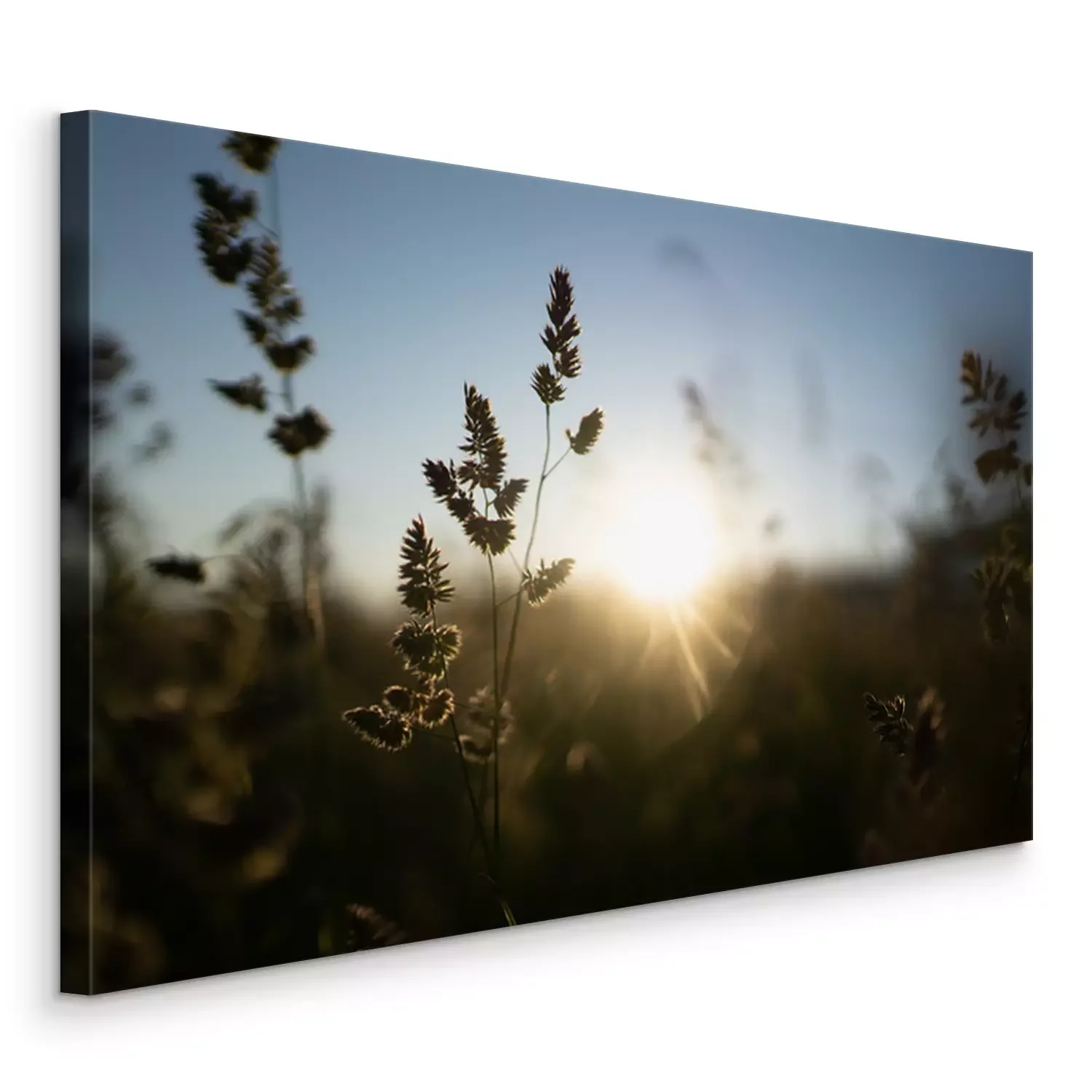 Tableau  ears of grass at sunset, meadow with grass in autumn