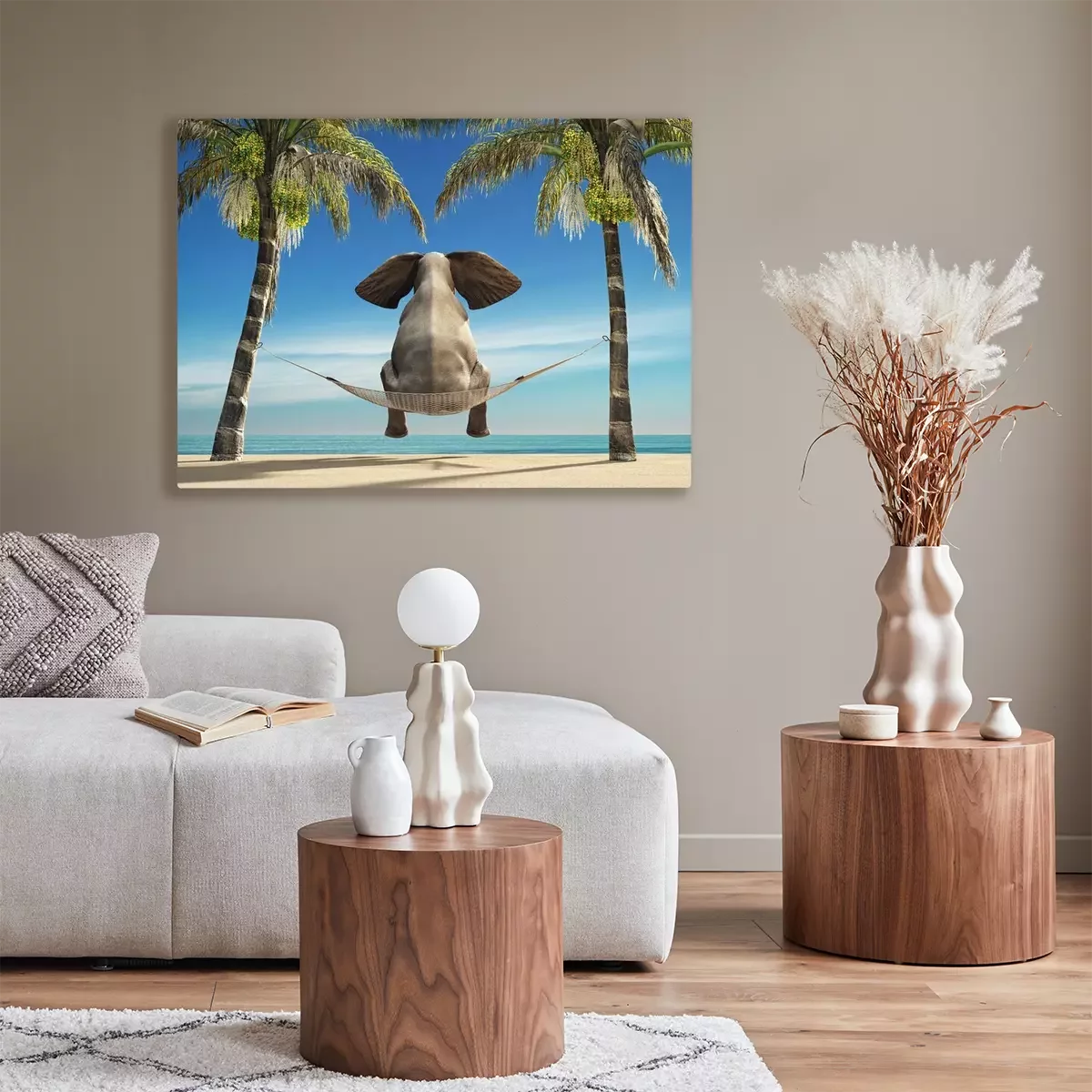 Tableau : Ein Elefant sitzt in einer Hängematte