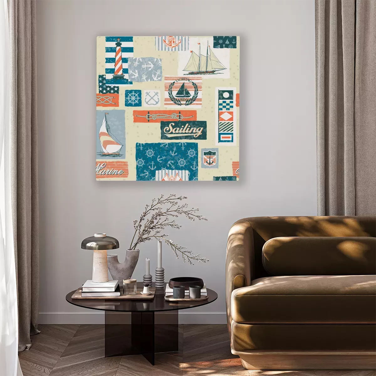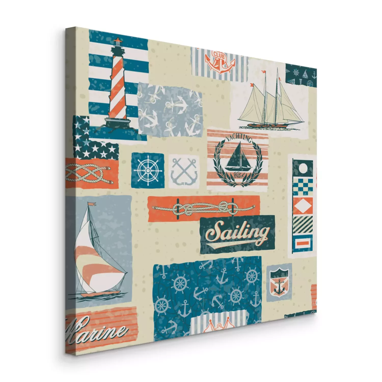 Tableau  Éléments vectoriels nautiques patchwork - seamless