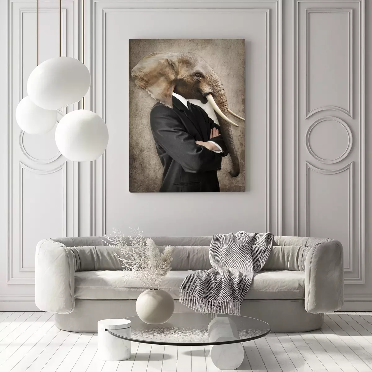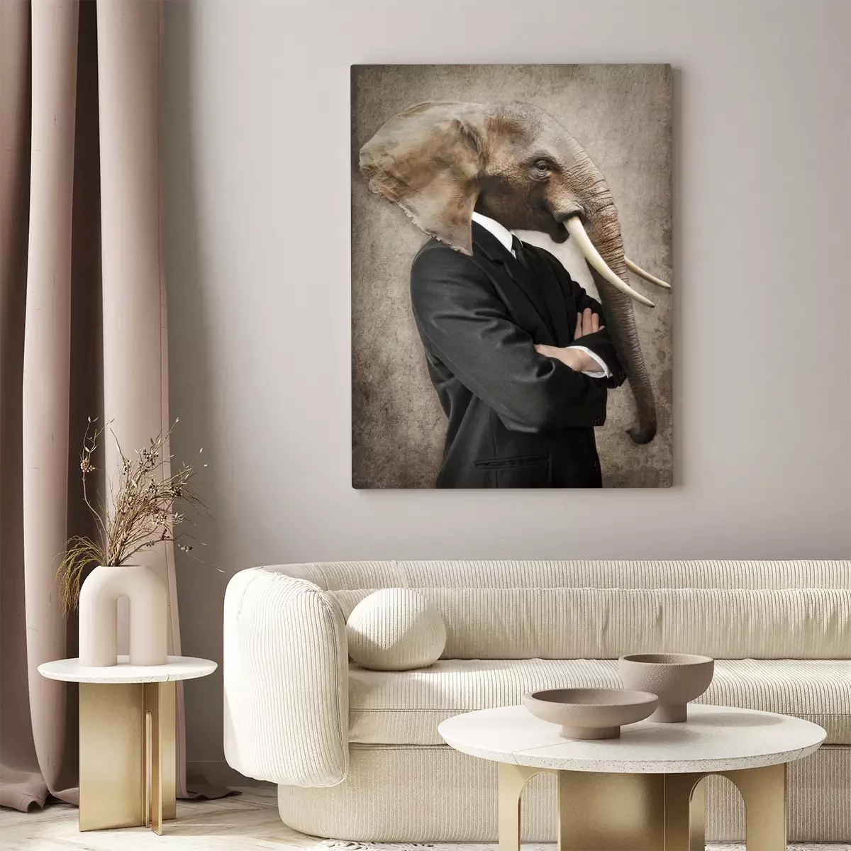 Tableau  Éléphant en costume. Homme à la tête d'un éléphant. Graphique du concept dans le style vintage.