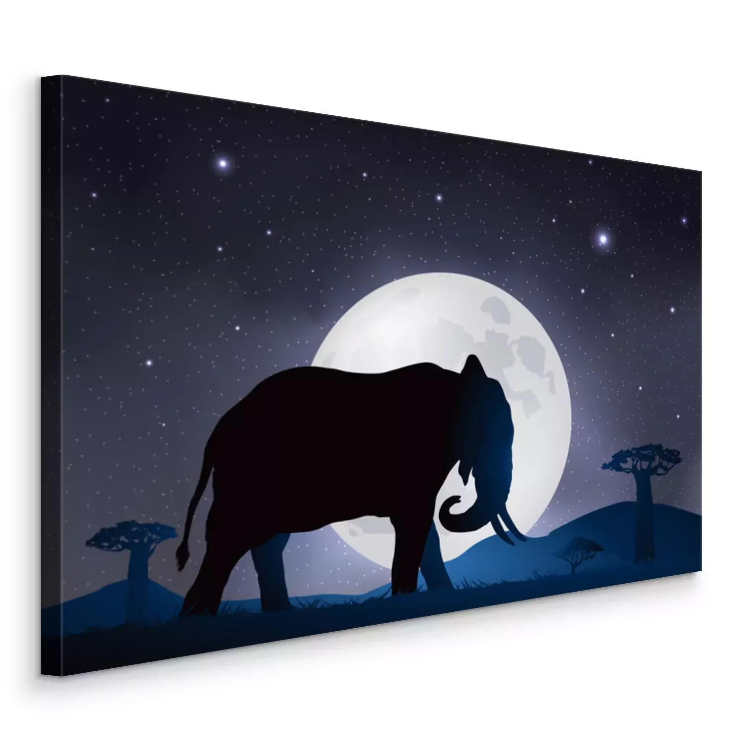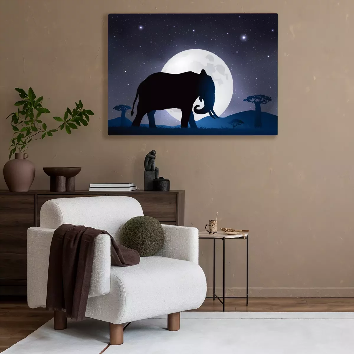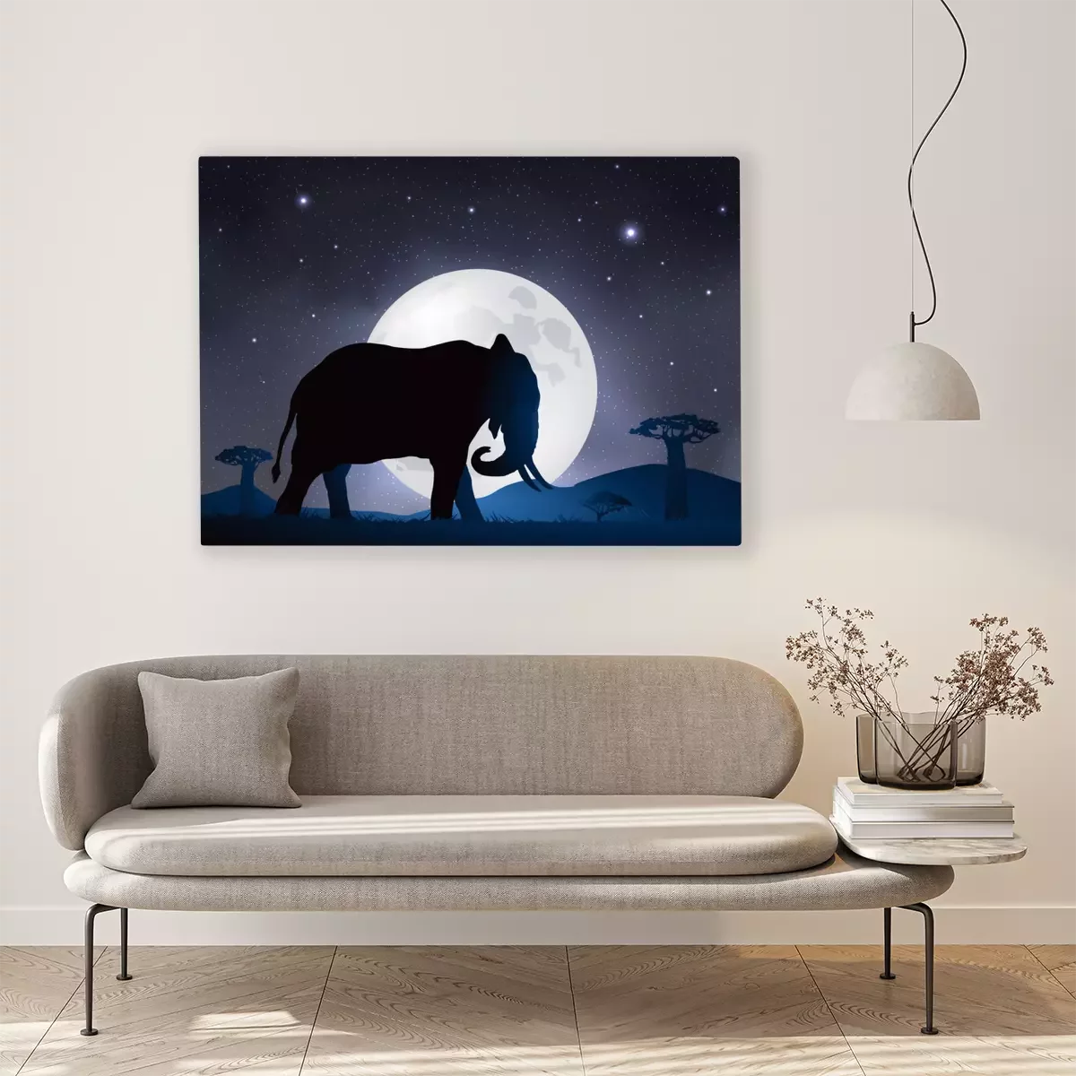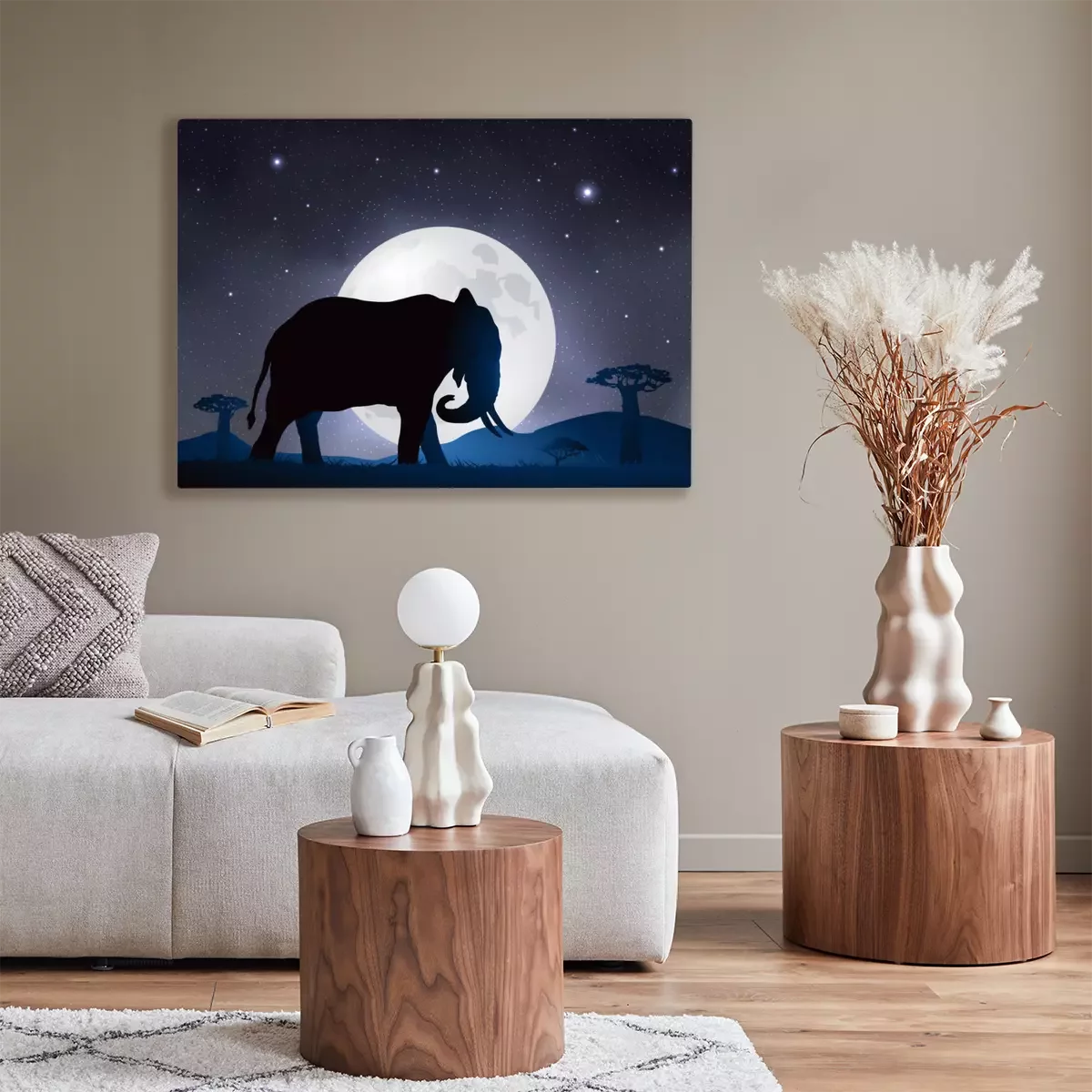 Tableau  Éléphant sur fond de lune et d'étoiles