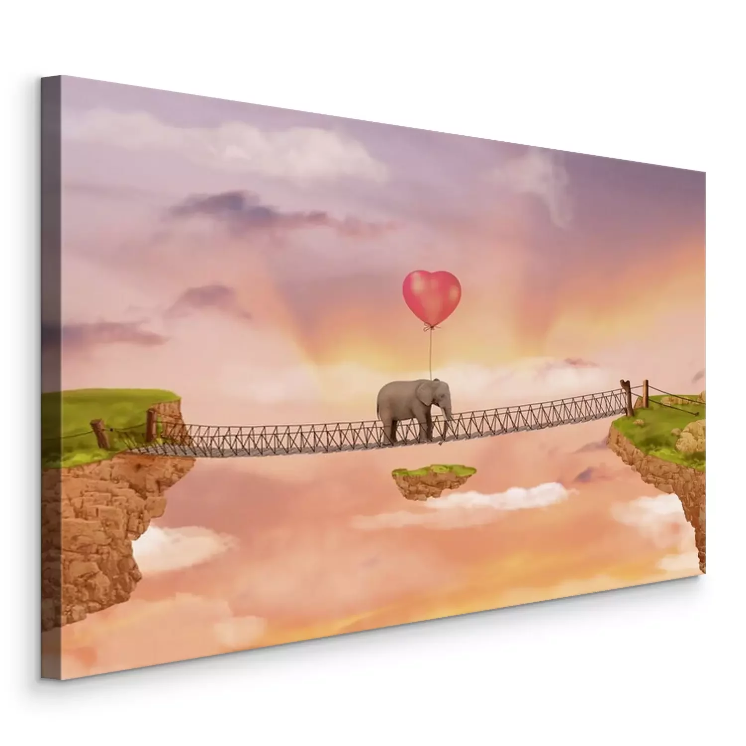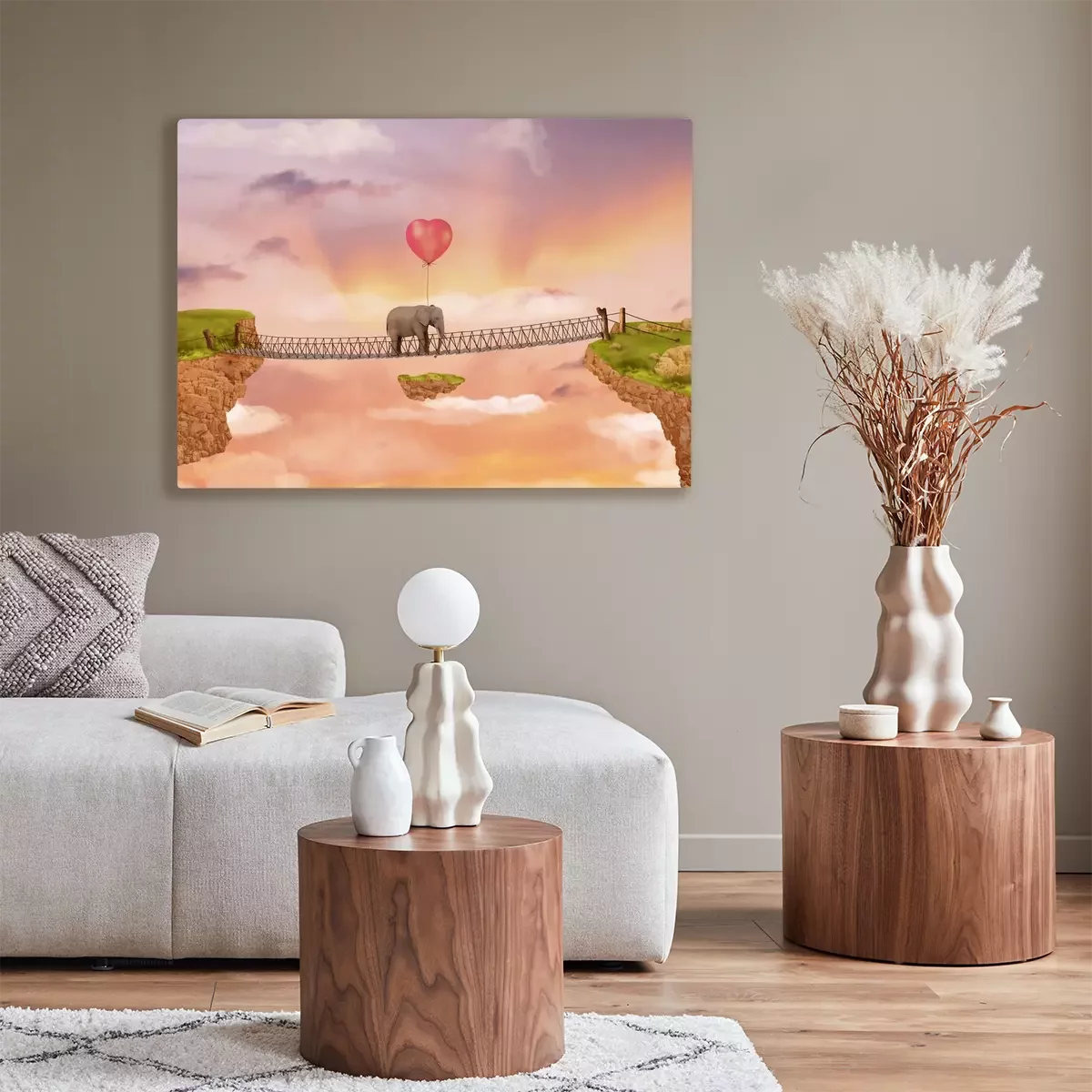 Tableau : Elephant sur un pont dans le ciel avec le ballon. Illustration