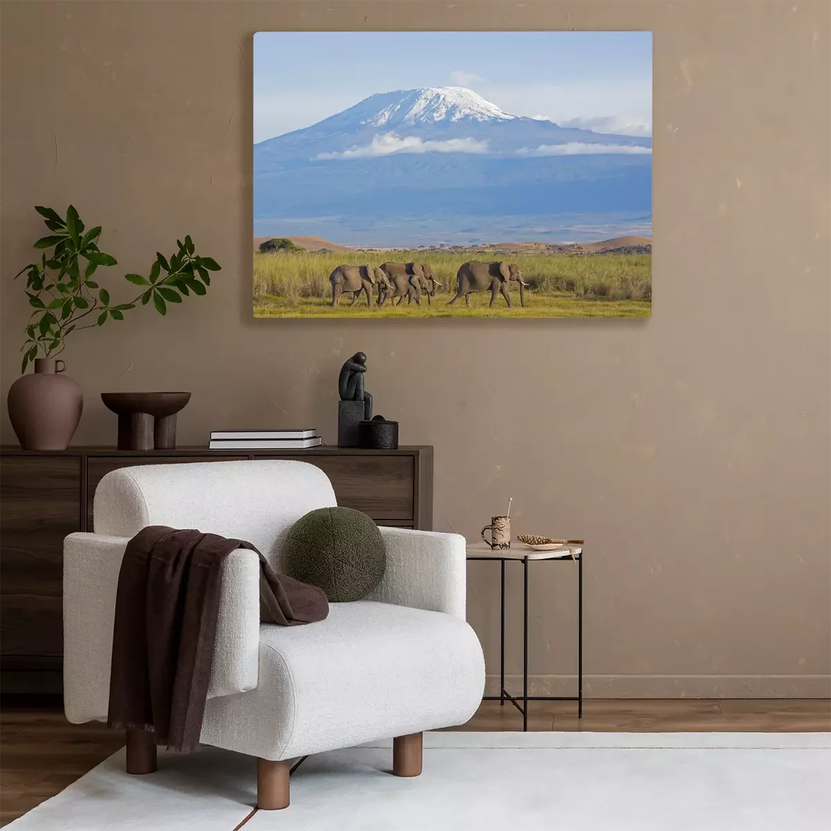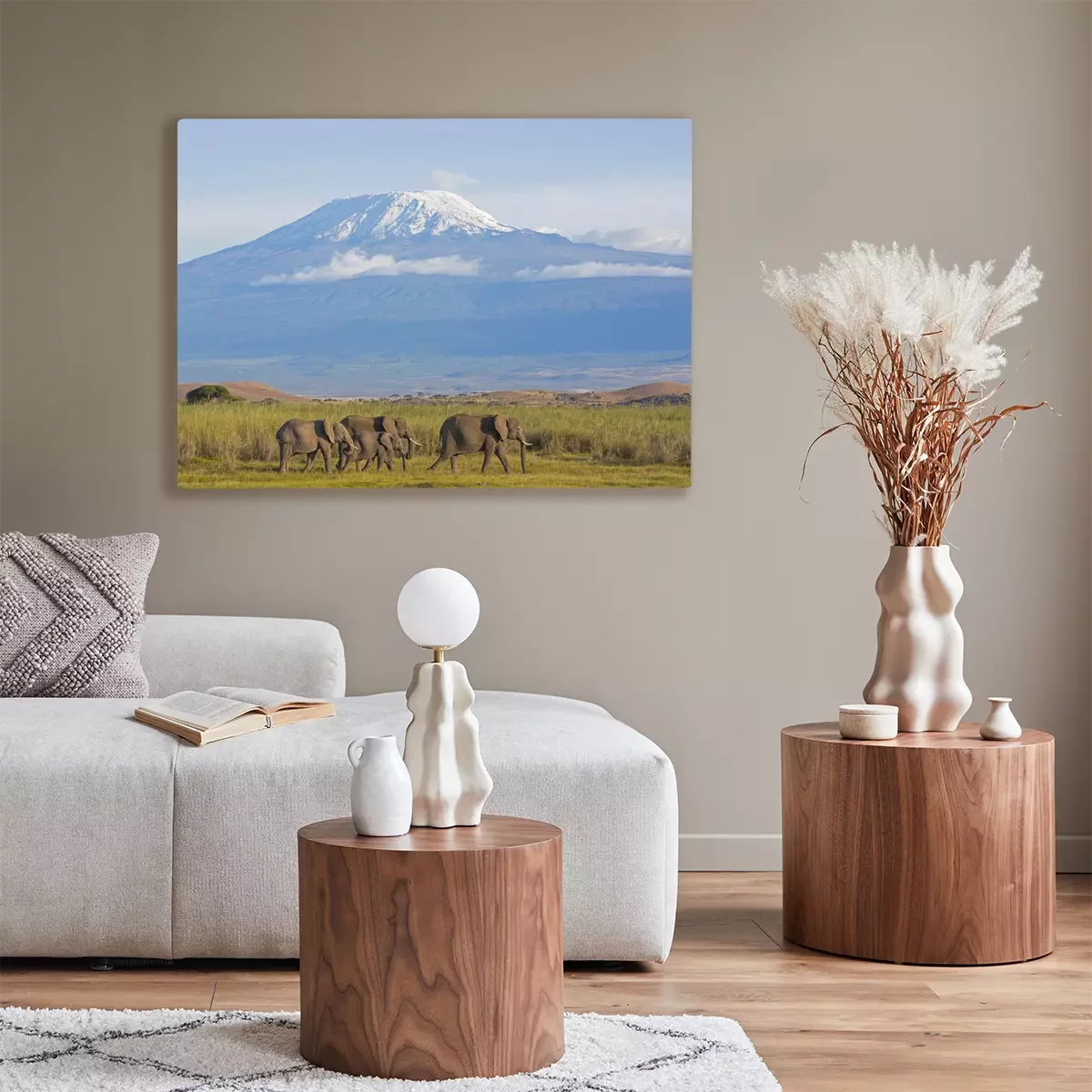 Tableau : Éléphants sur fond de montagnes et de nature