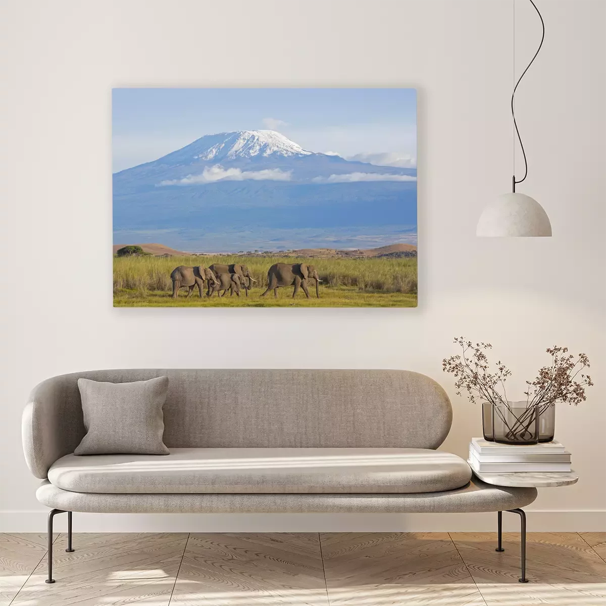 Tableau  Éléphants sur fond de montagnes et de nature
