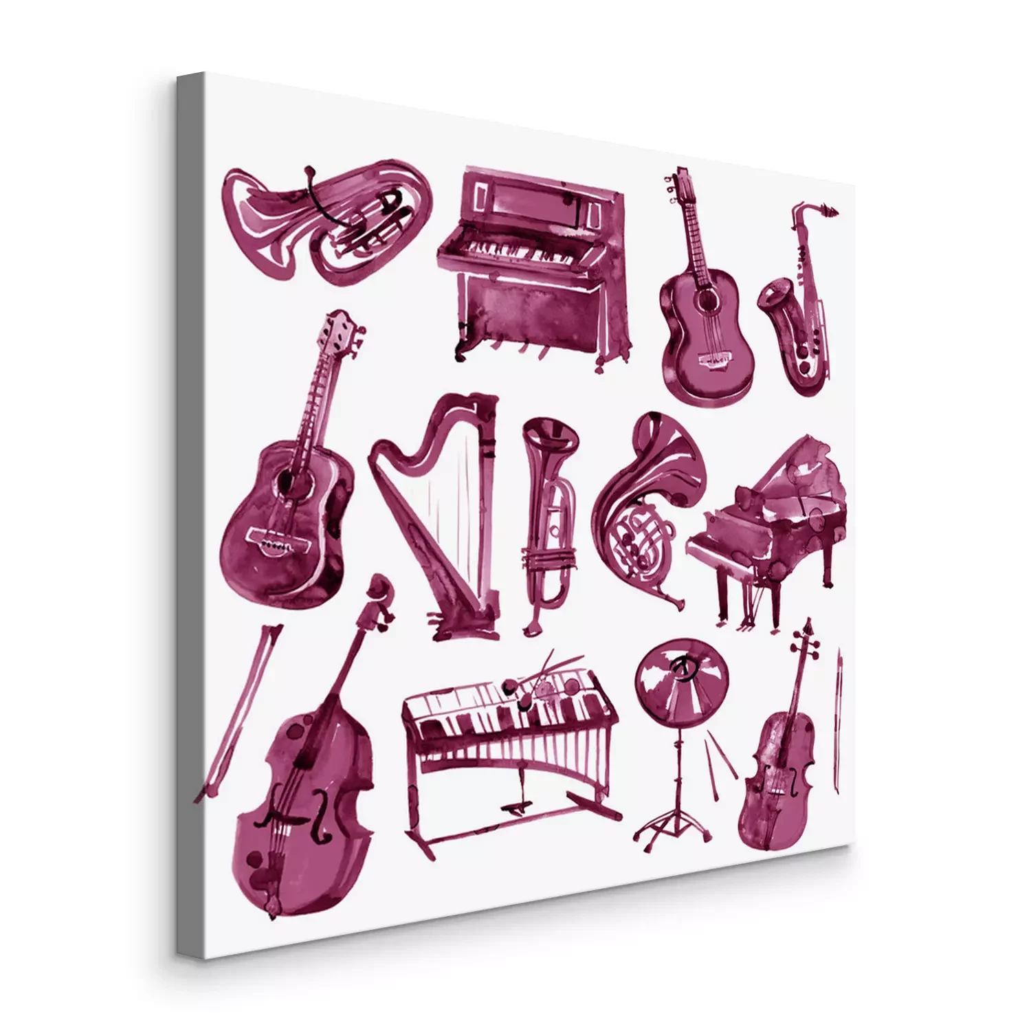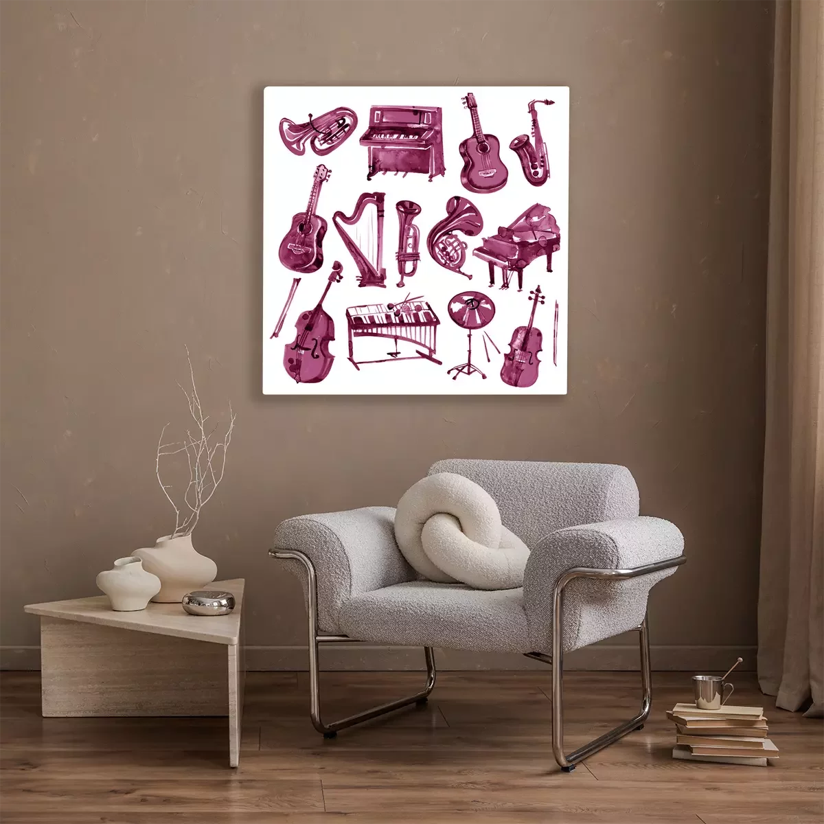 Tableau  Ensemble de main dessiner des instruments de musique aquarelle de vin de Bourgogne