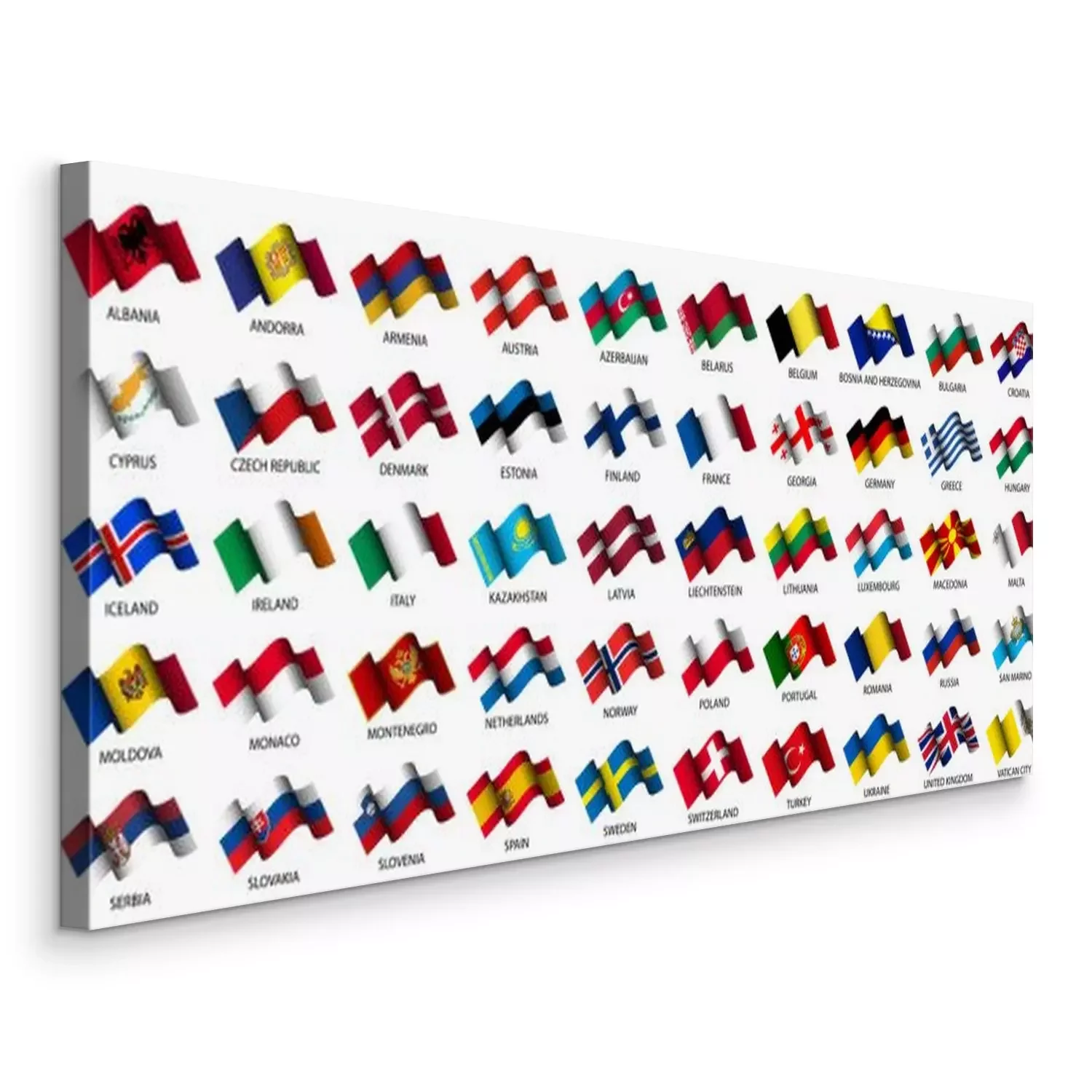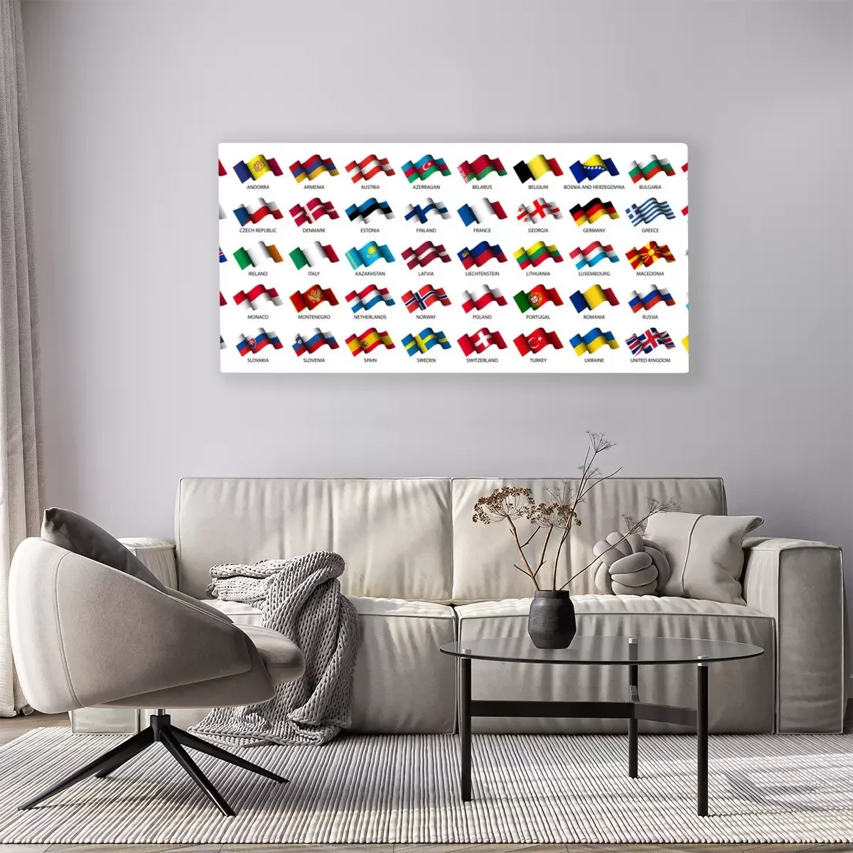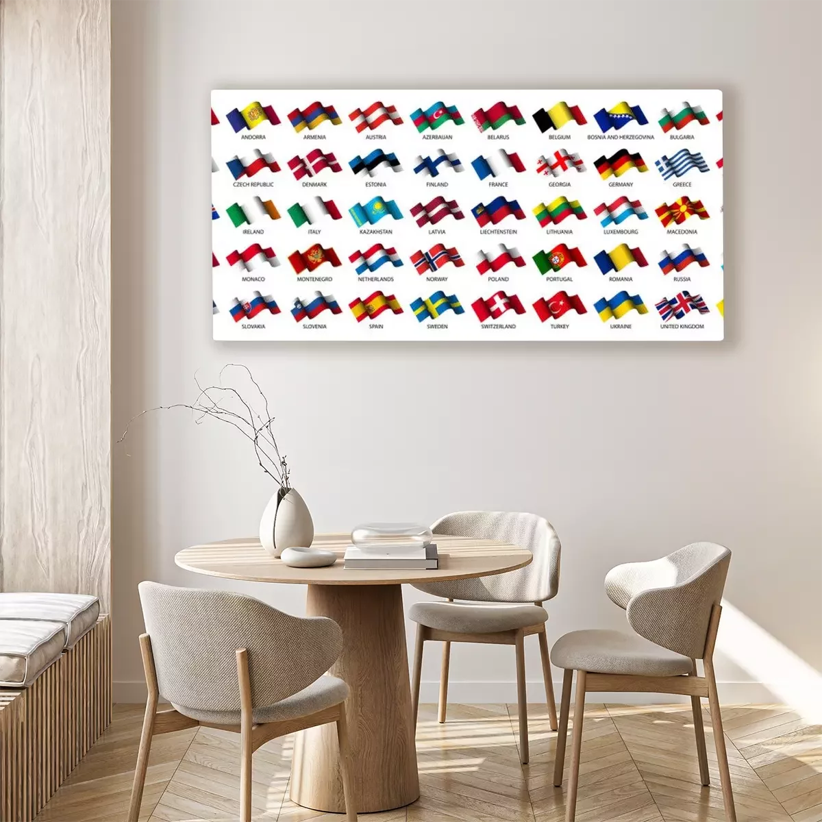 Tableau : ensemble de tous les drapeaux européens sur fond blanc
