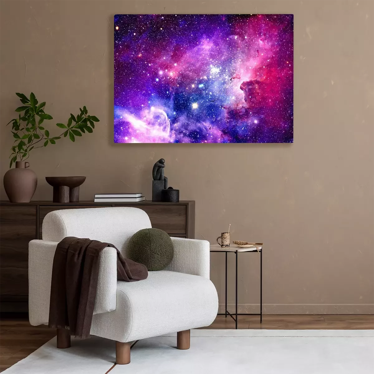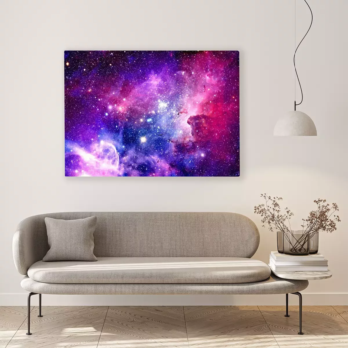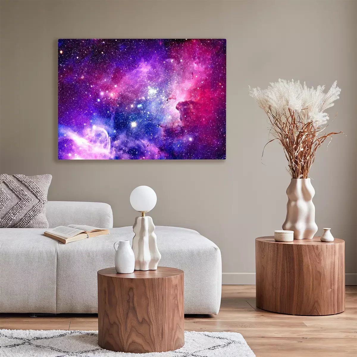 Tableau : Espace violet et rose avec étoiles